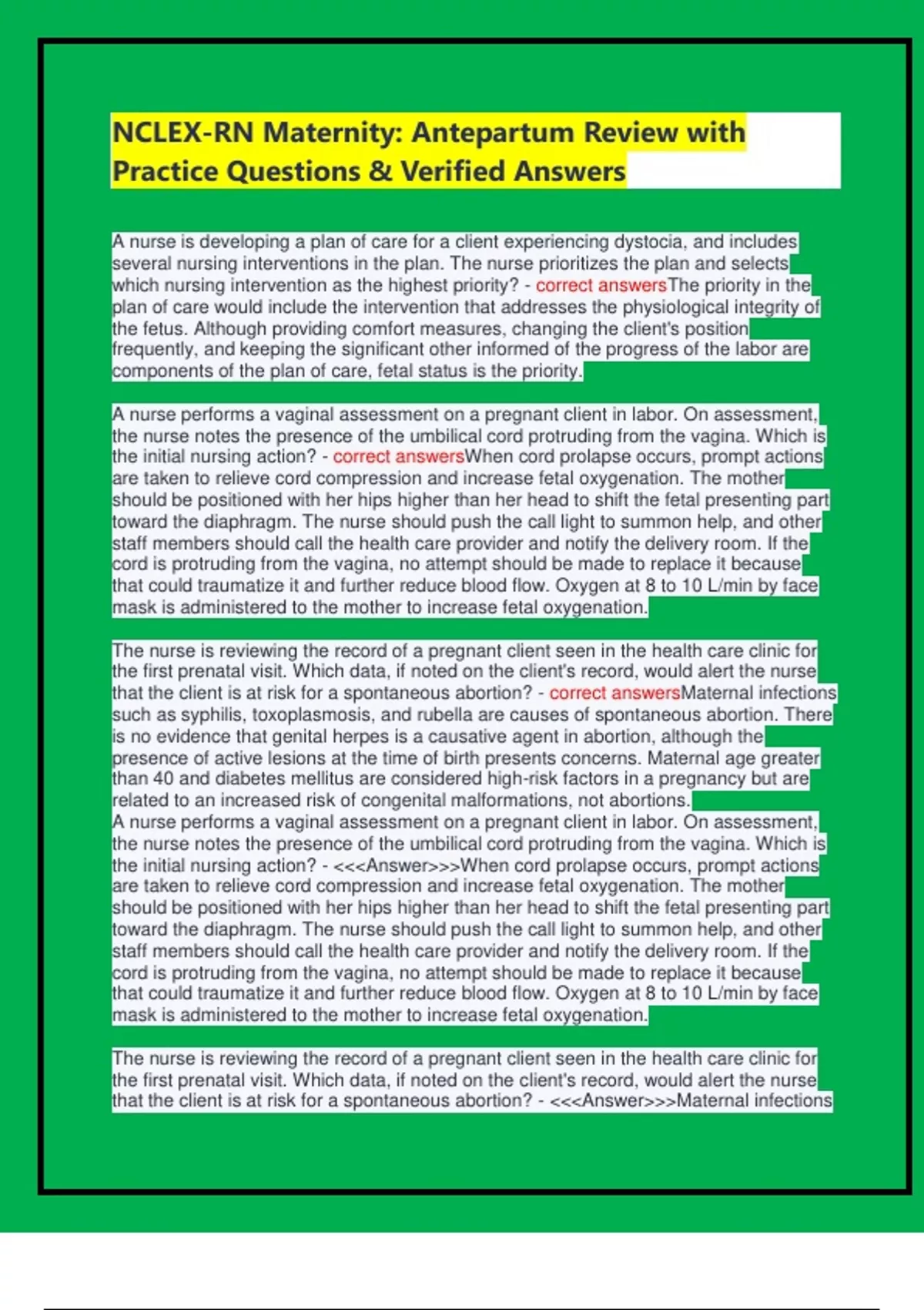 the initial nursing action? - correct answersWhen cord prolapse occurs, prompt actions