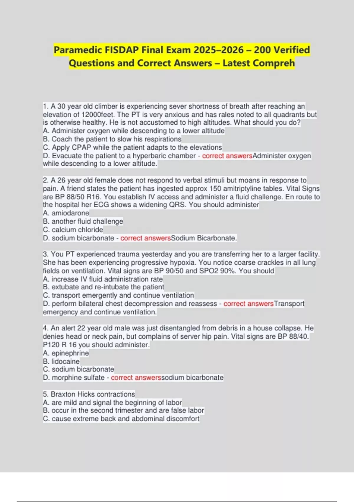 1. A 30 year old climber is experiencing sever shortness of breath after reaching an
