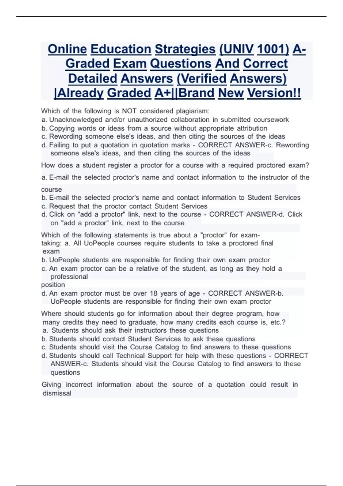 d. Failing llto llput lla llquotation llin llquotation llmarks ll- llCORRECT llANSWER-c. llRewording