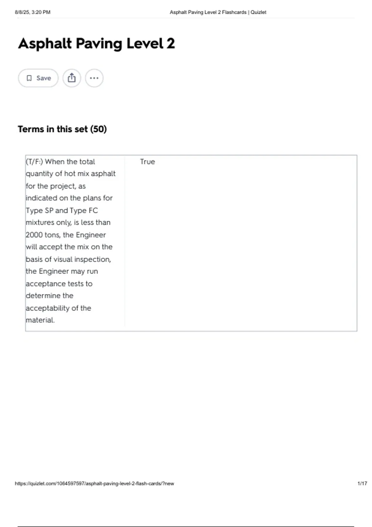 https://quizlet.com/1064597597/asphalt-paving-level-2-flash-cards/?new 2/17