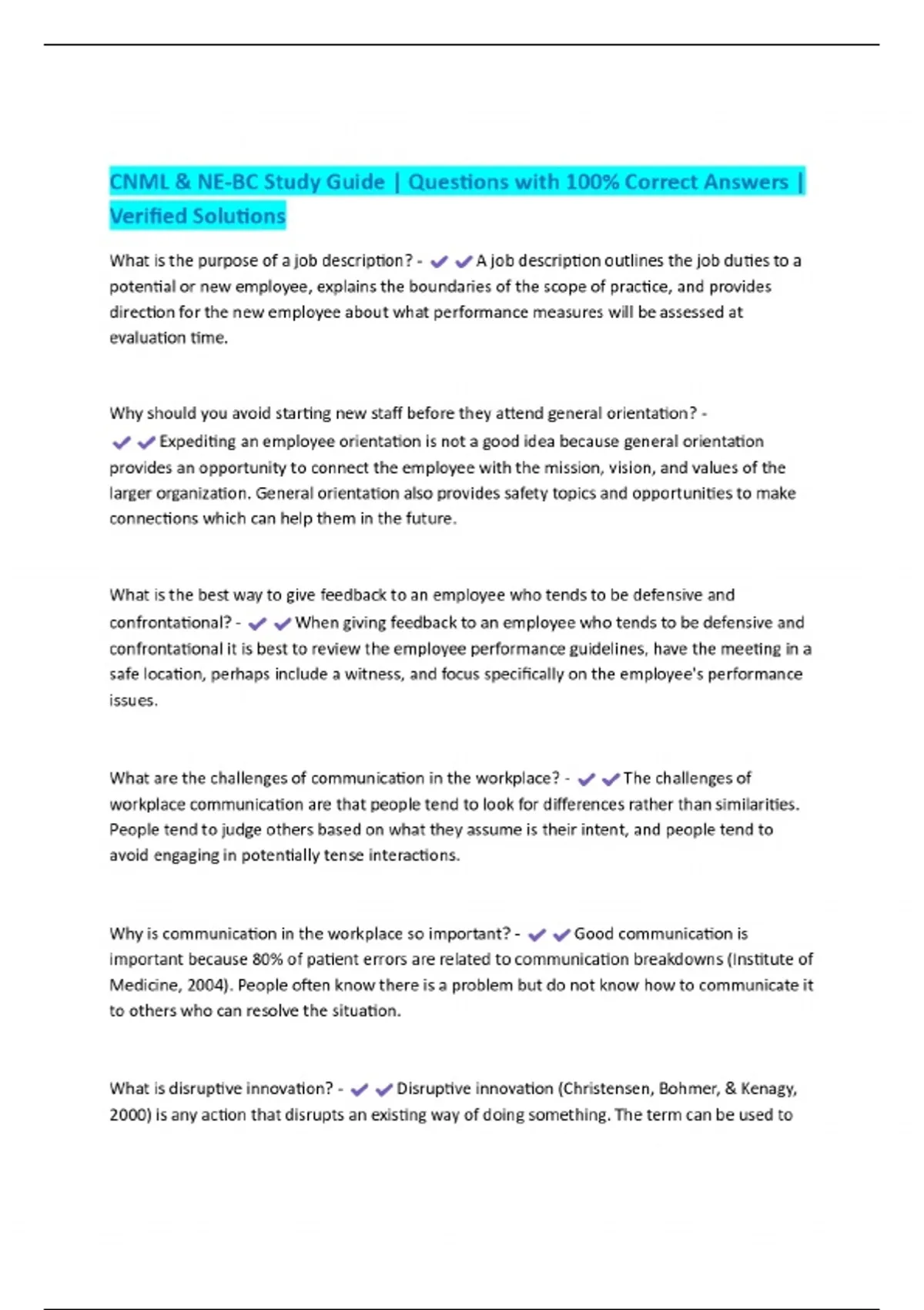 CNML & NE-BC Study Guide | Questions with 100% Correct Answers | Verified Solutions