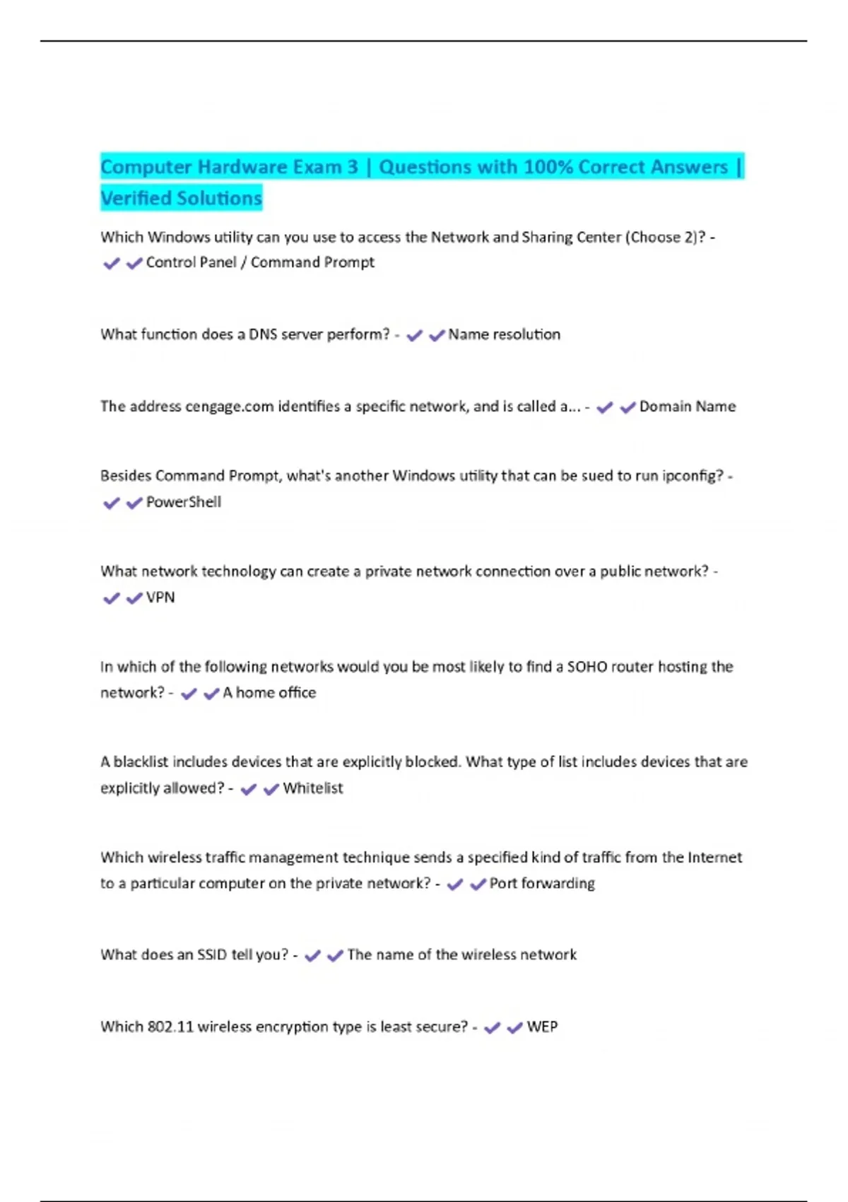 Computer Hardware Exam 3 | Questions with 100% Correct Answers | Verified Solutions