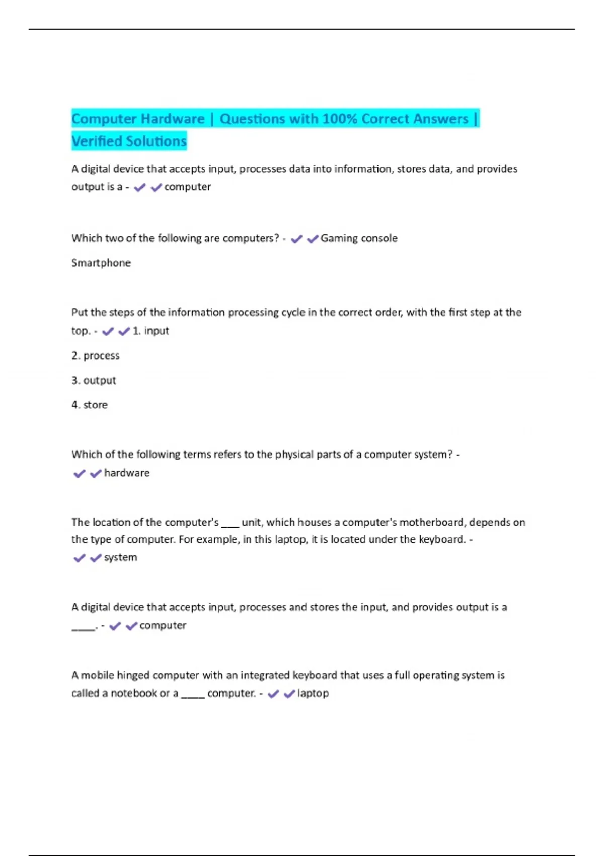 Computer Hardware | Questions with 100% Correct Answers | Verified Solutions