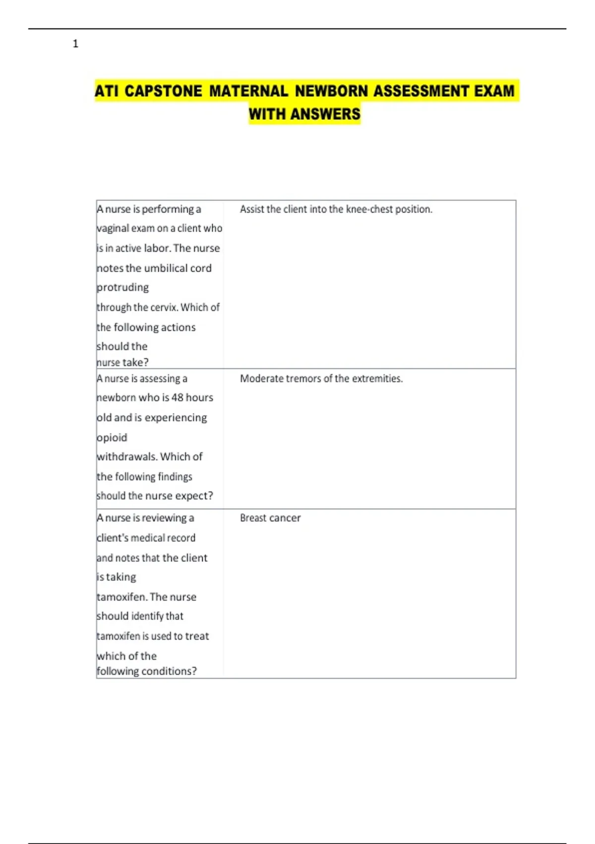 ATI CAPSTONE MATERNAL NEWBORN ASSESSMENT EXAM
