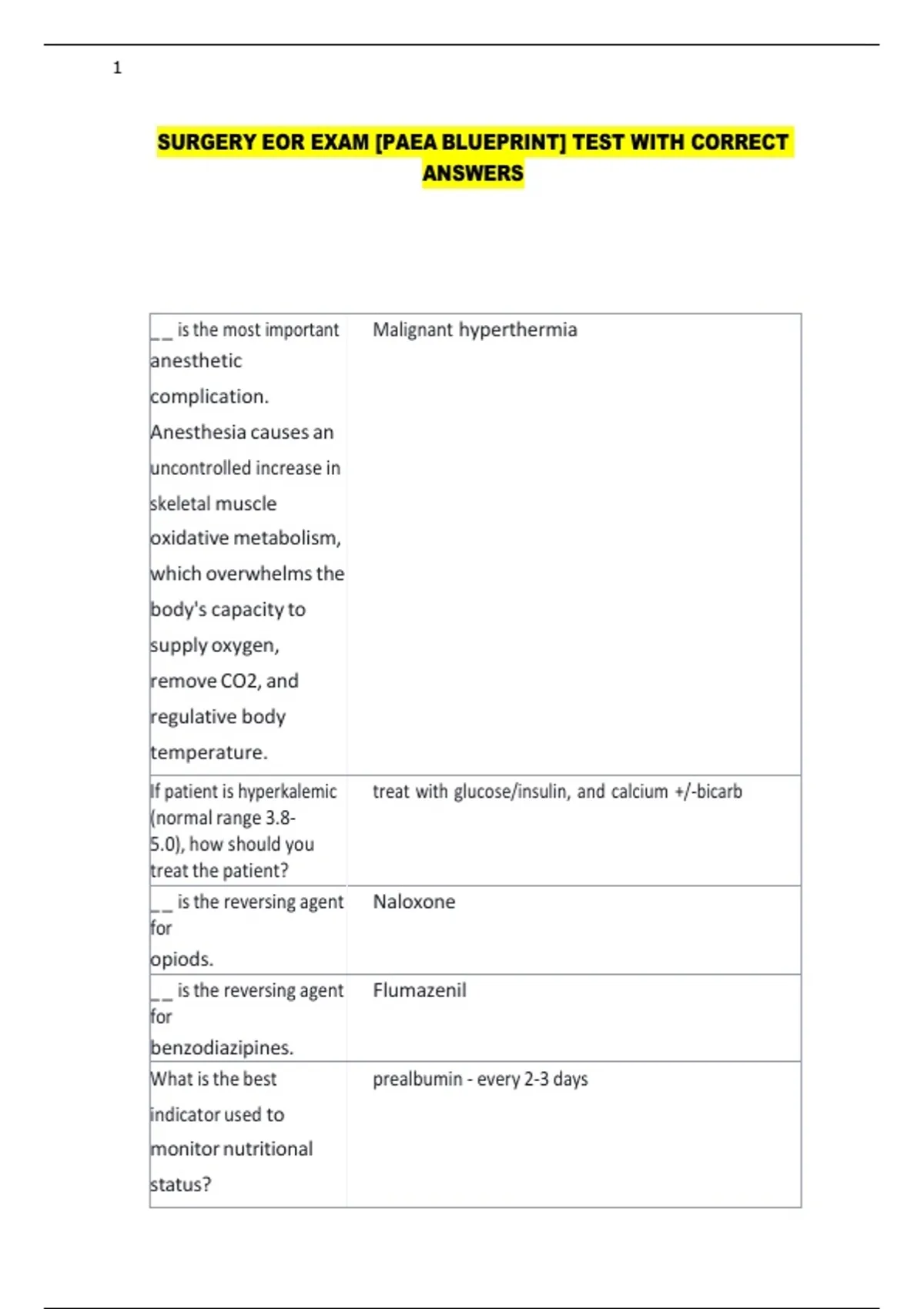 SURGERY EOR EXAM [PAEA BLUEPRINT] TEST WITH CORRECT