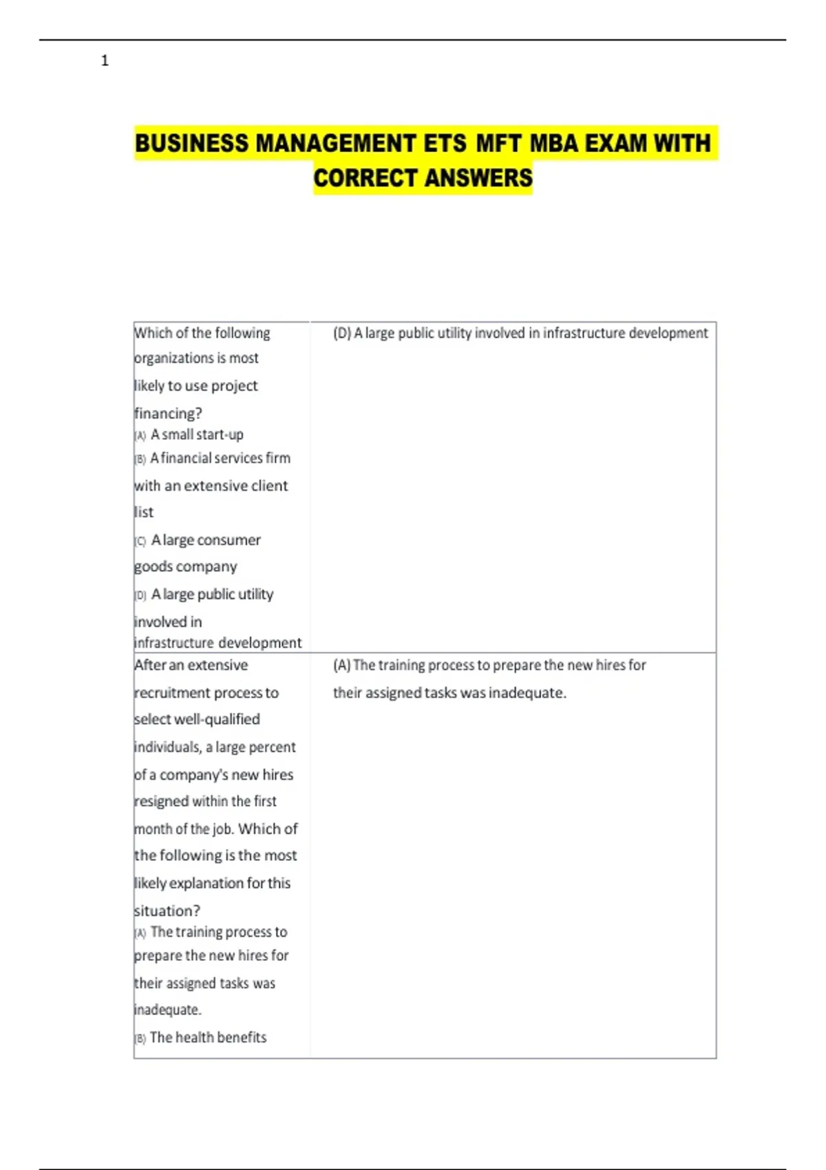 BUSINESS MANAGEMENT ETS MFT MBA EXAM WITH