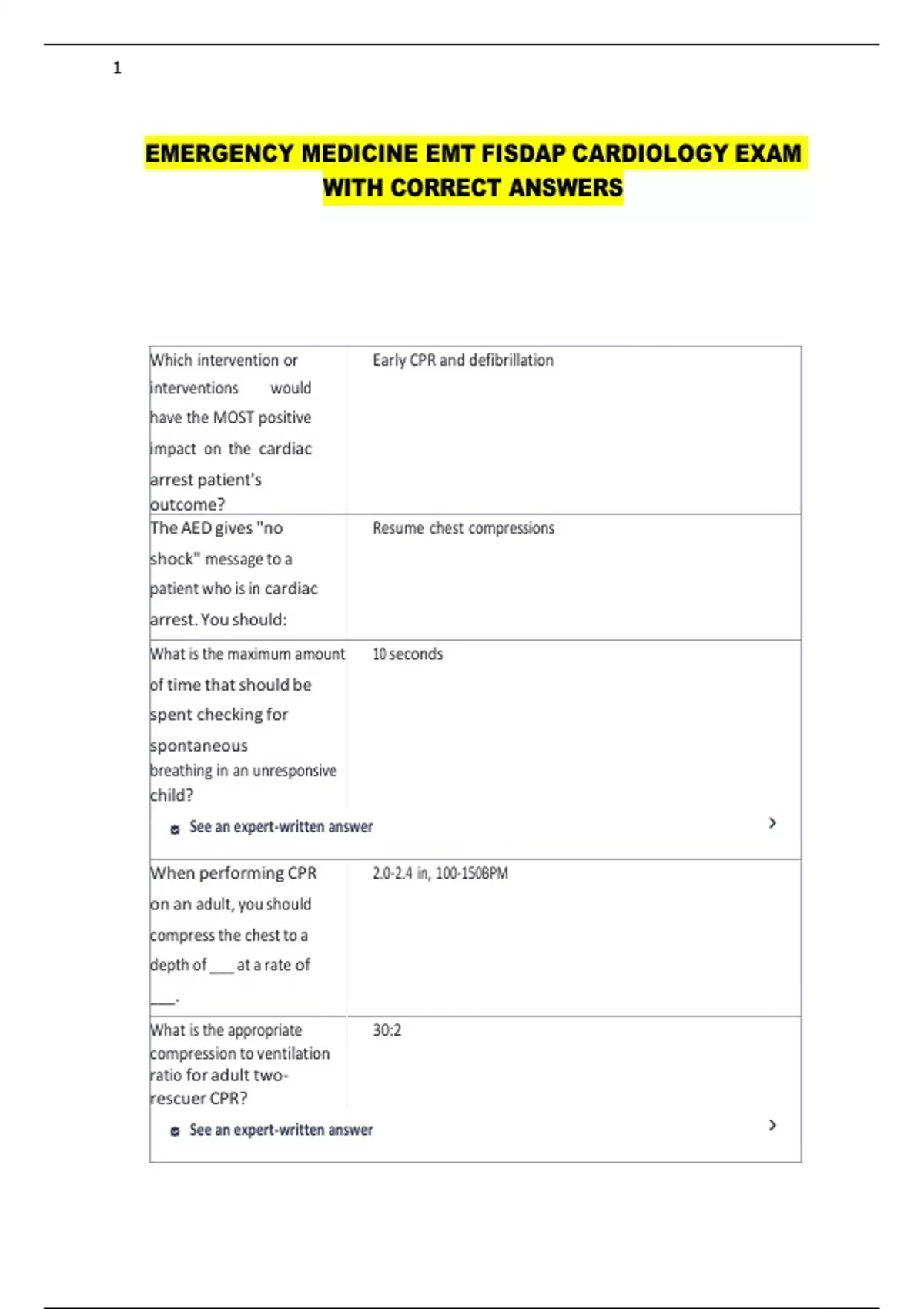 EMERGENCY MEDICINE EMT FISDAP CARDIOLOGY EXAM
