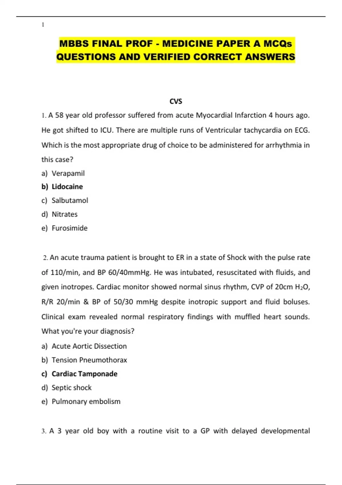 MBBS FINAL PROF - MEDICINE PAPER A MCQs