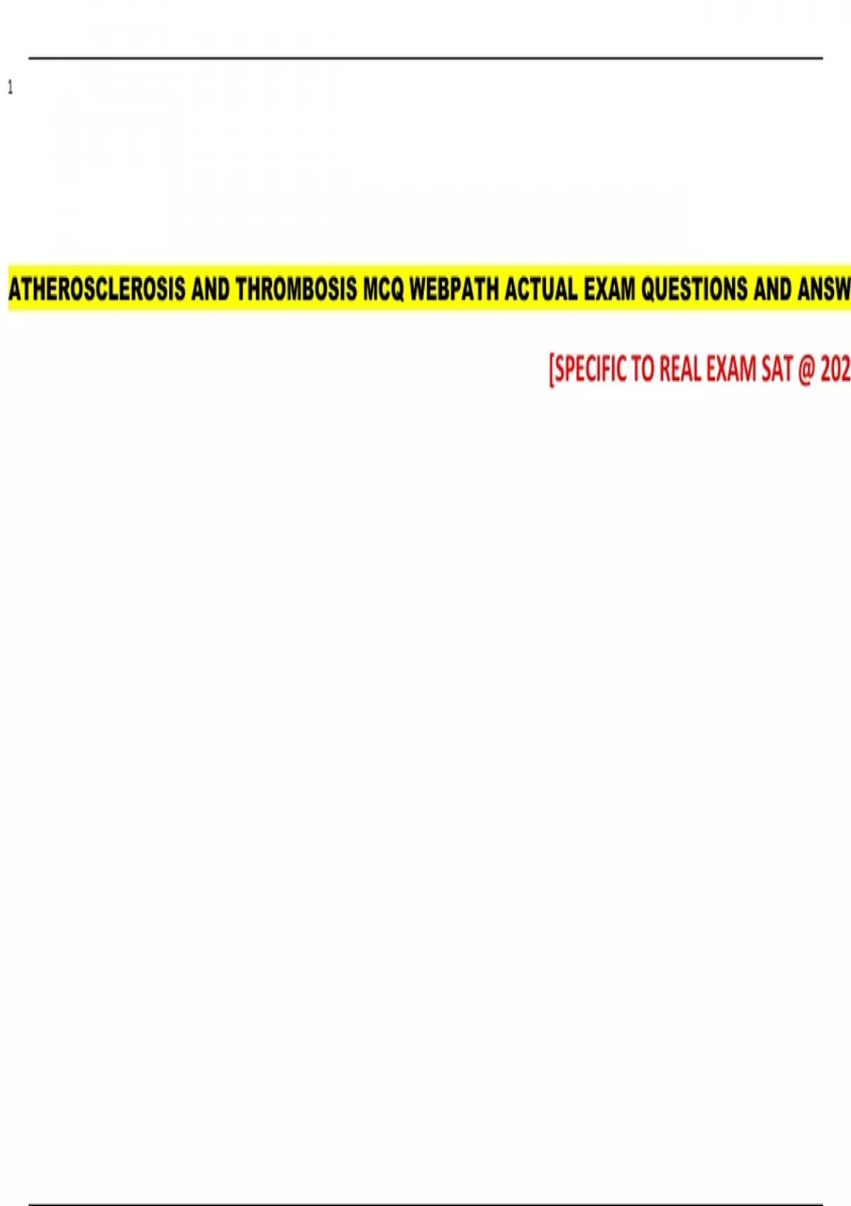 ATHEROSCLEROSIS AND THROMBOSIS MCQ WEBPATH ACTUAL EXAM QUESTIONS AND ANSW