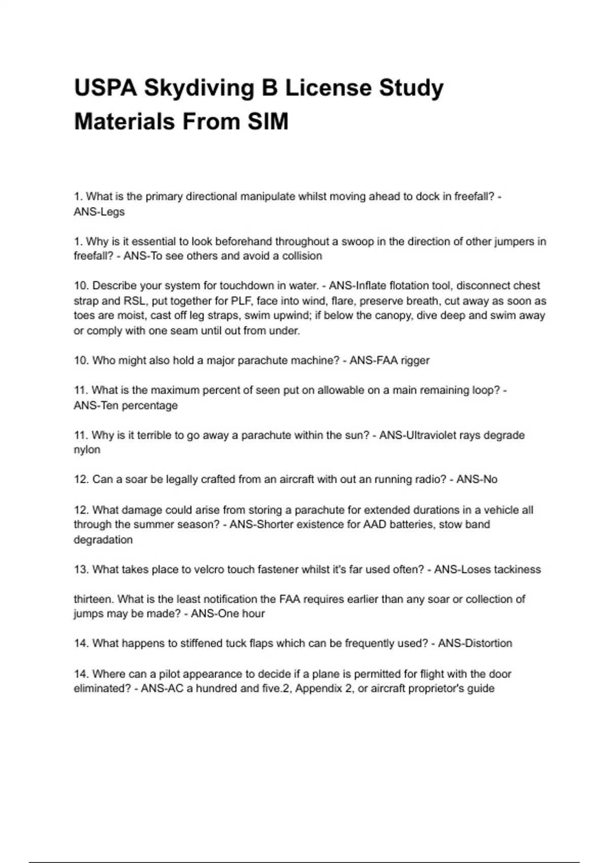 USPA Skydiving B License Study