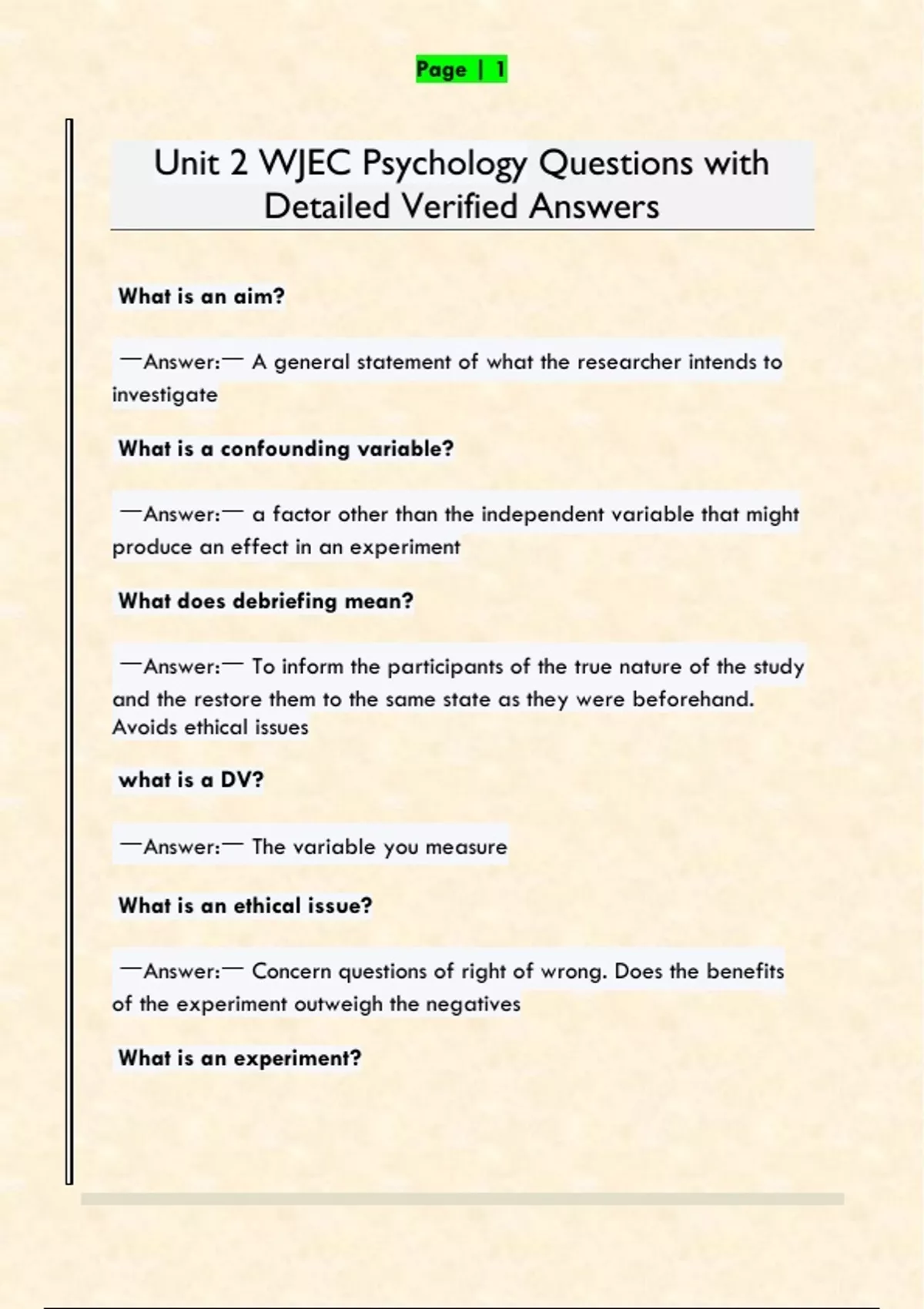 Unit 2 WJEC Psychology Questions with Detailed Verified Answers