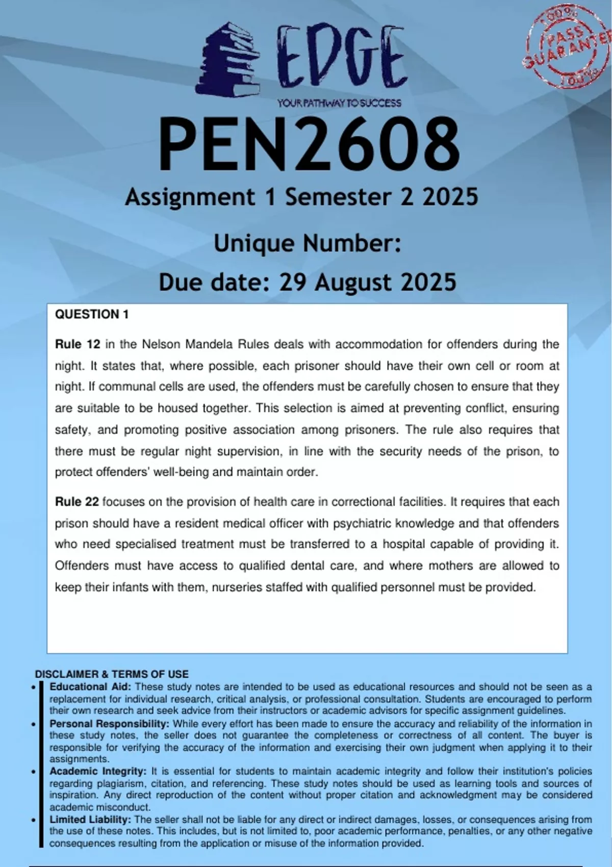 PEN2608 Assignment 2 (ANSWERS) Semester 2 2025 - DISTINCTION GUARANTEED