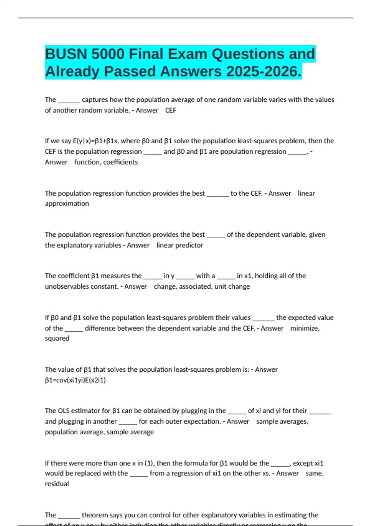 BUSN 5000 Final Exam Questions and Already Passed Answers .