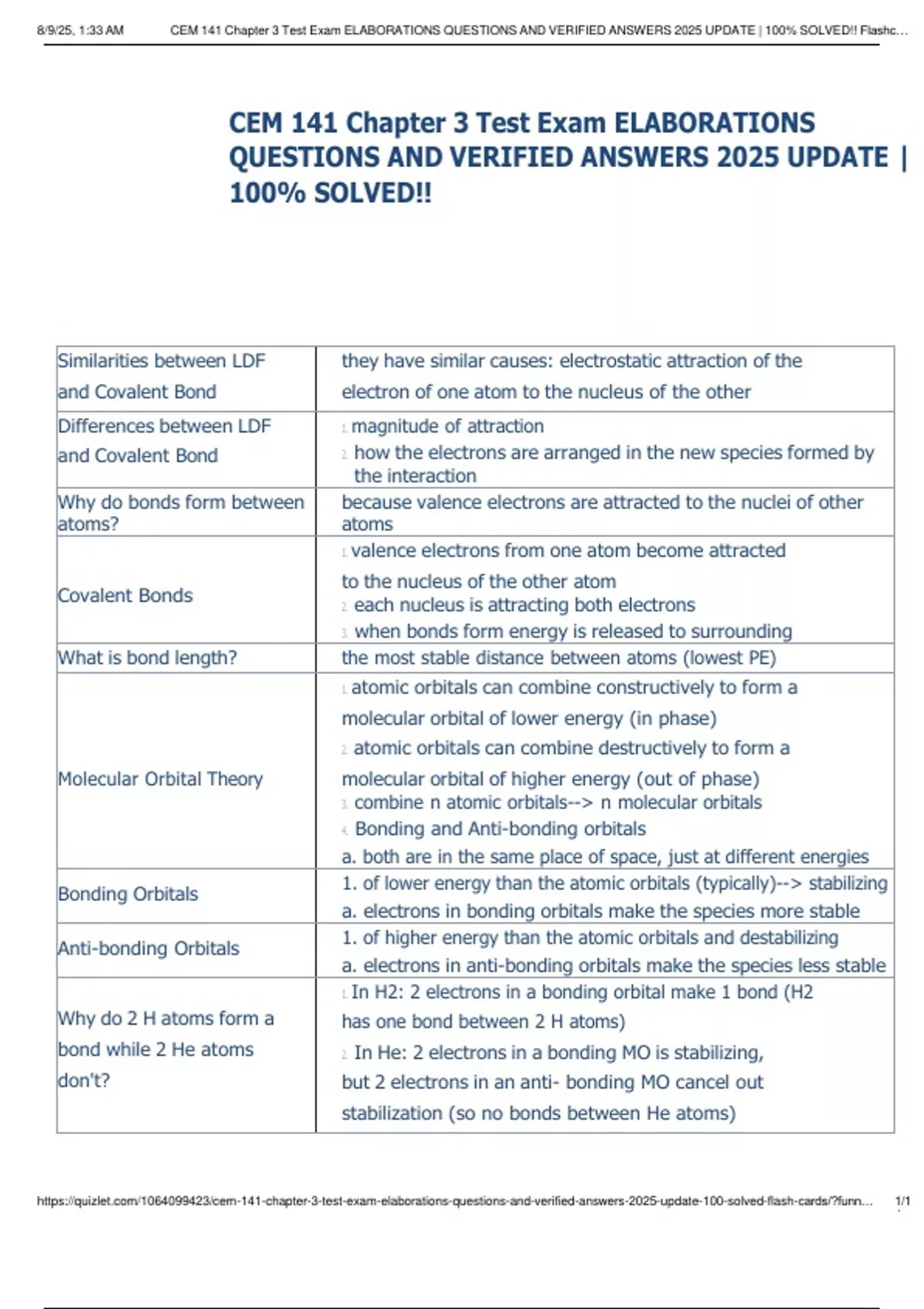 , 8/9/25, 1:33 AM CEM 141 Chapter 3 Test Exam ELABORATIONS QUESTIONS AND VERIFIED ANSWERS 2025 UPDATE | 100% SOLVED!! Flashc…
