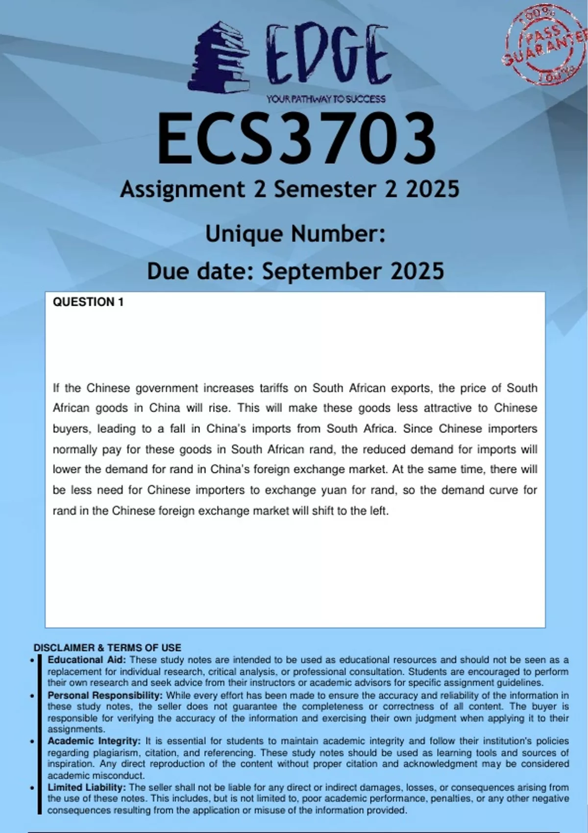 ECS3703 Assignment 2 (ANSWERS) Semester 2 2025 - DISTINCTION GUARANTEED
