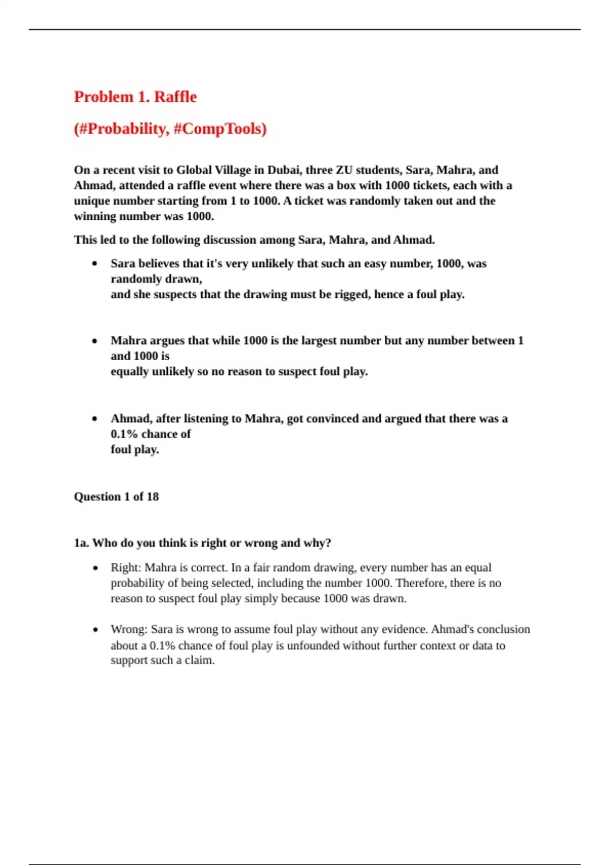 o Mahra correctly points out that in a fair raffle with 1000 tickets, every ticket,