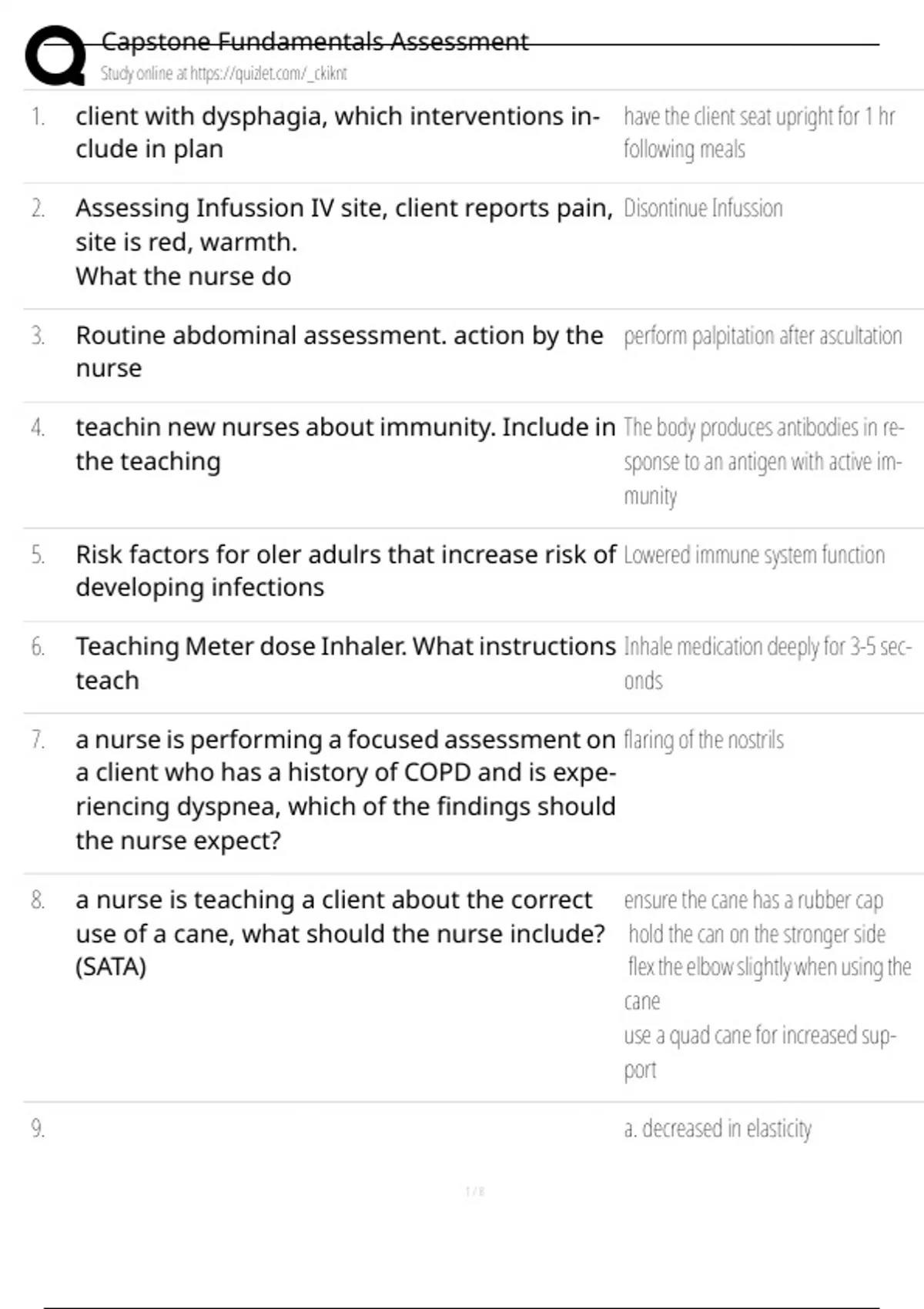 8. a nurse is teaching a client about the correct ensure the cane has a rubber cap