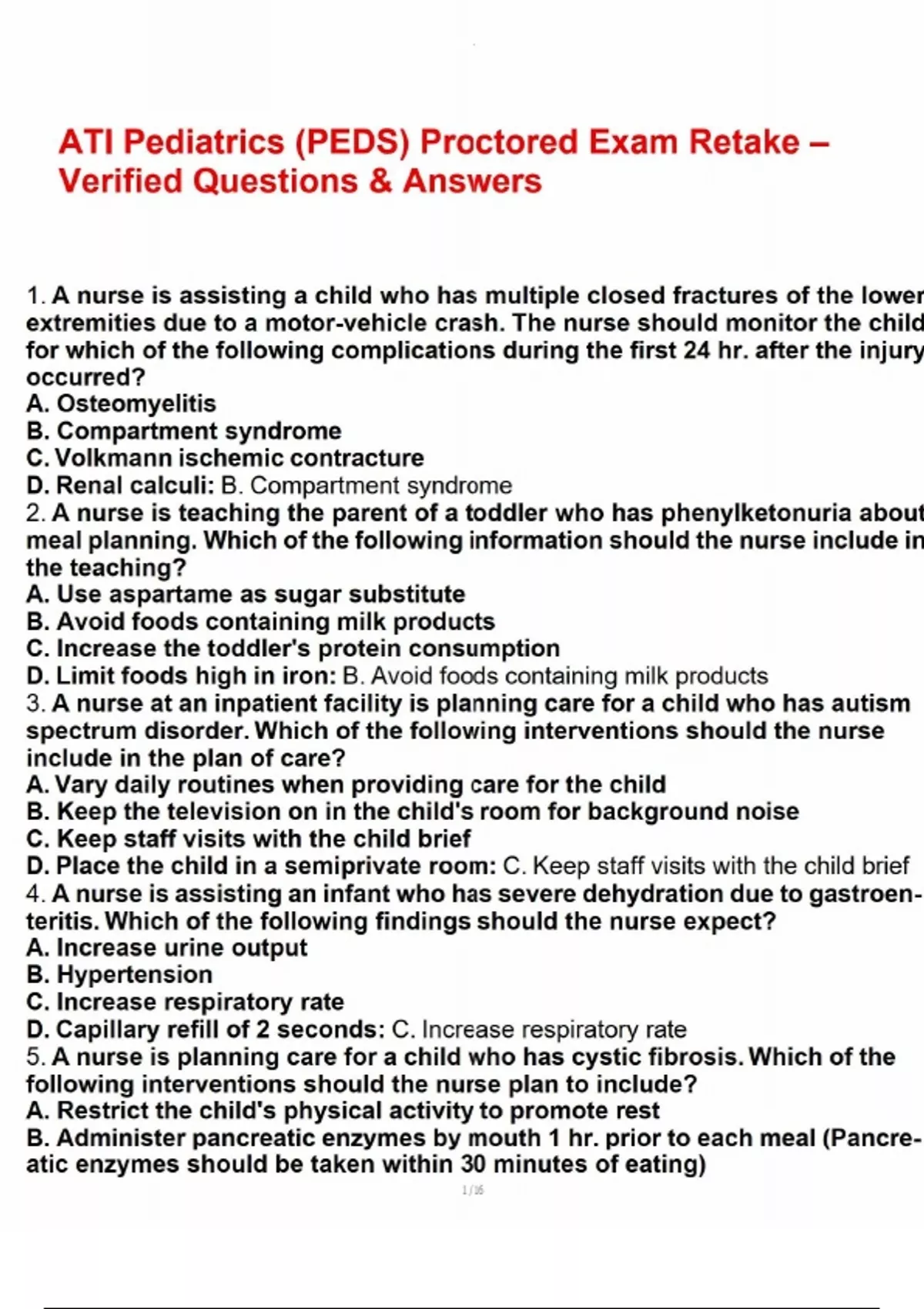 ATI Pediatrics (PEDS) Proctored Exam Retake – Verified Questions & A ATI Pediatrics (PEDS) Proctored Exam Retake – Verified Questions & A ATI Pediatrics (PEDS) Proctored Exam Retake – Verified Questions & A