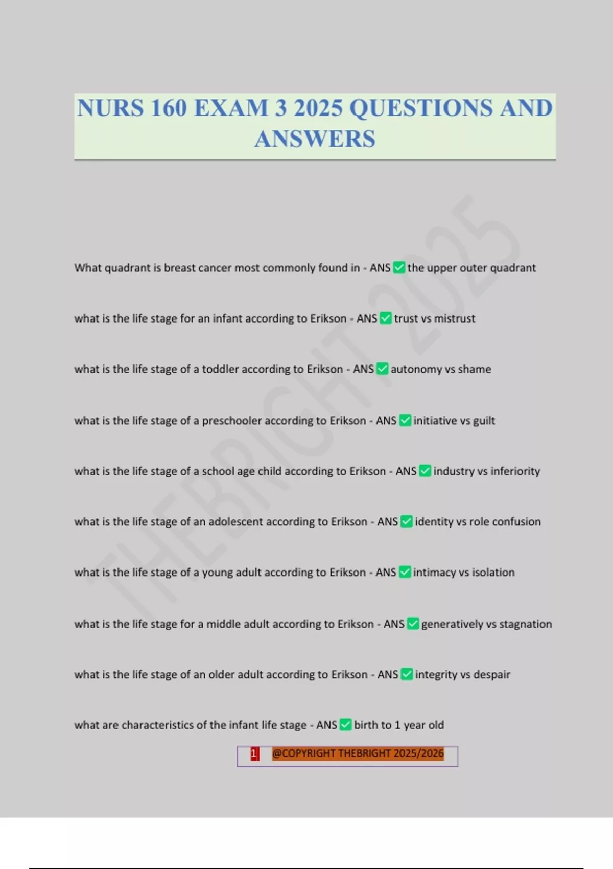 NURS 160 EXAM 3 2025 QUESTIONS AND ANSWERS