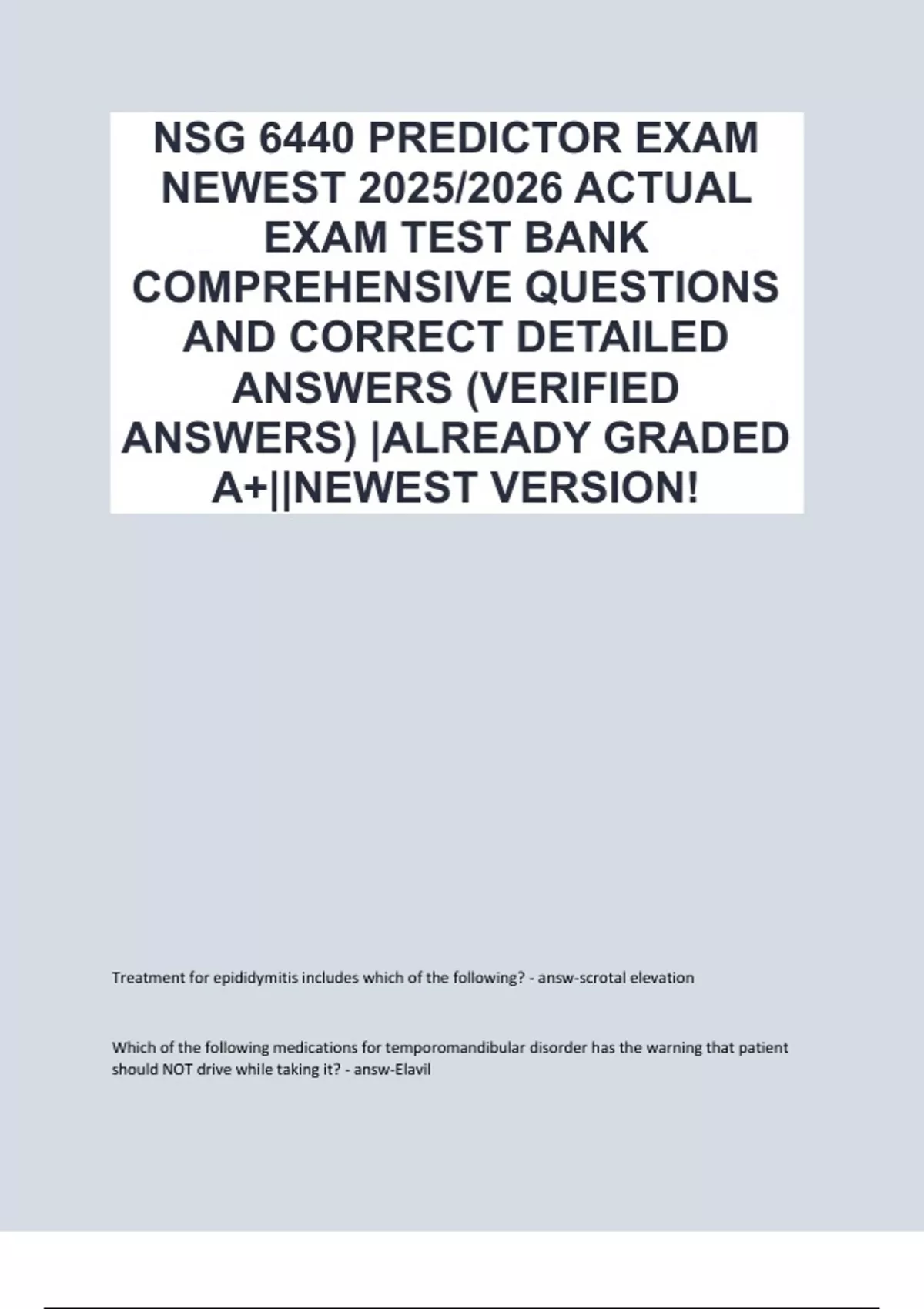 NSG 6440 PREDICTOR EXAM NEWEST 2025/2026 ACTUAL EXAM TEST BANK COMPREHENSIVE QUESTIONS AND CORRECT DETAILED ANSWERS (VERIFIED ANSWERS) |ALREADY GRADED A+||NEWEST VERSION!
