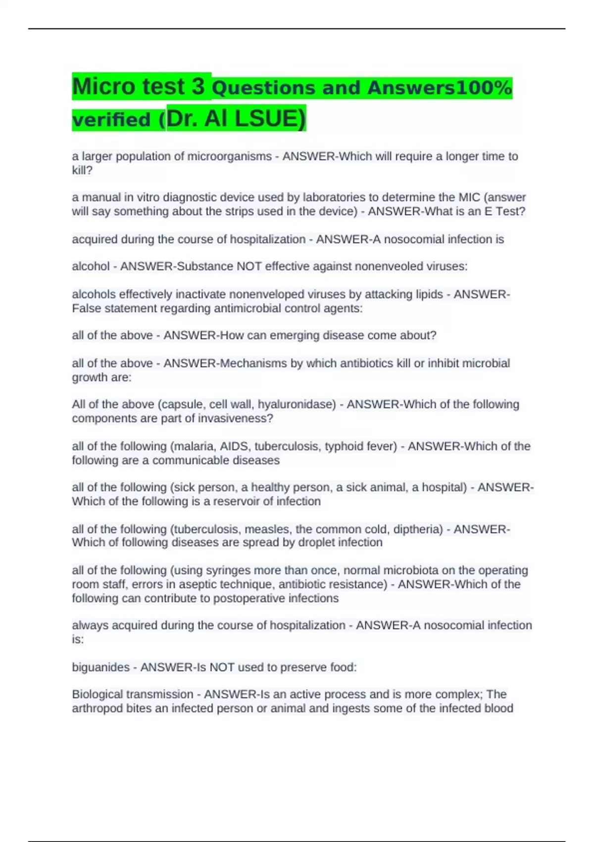 Micro test 3 Questions and Answers100% verified (Dr. Al LSUE)