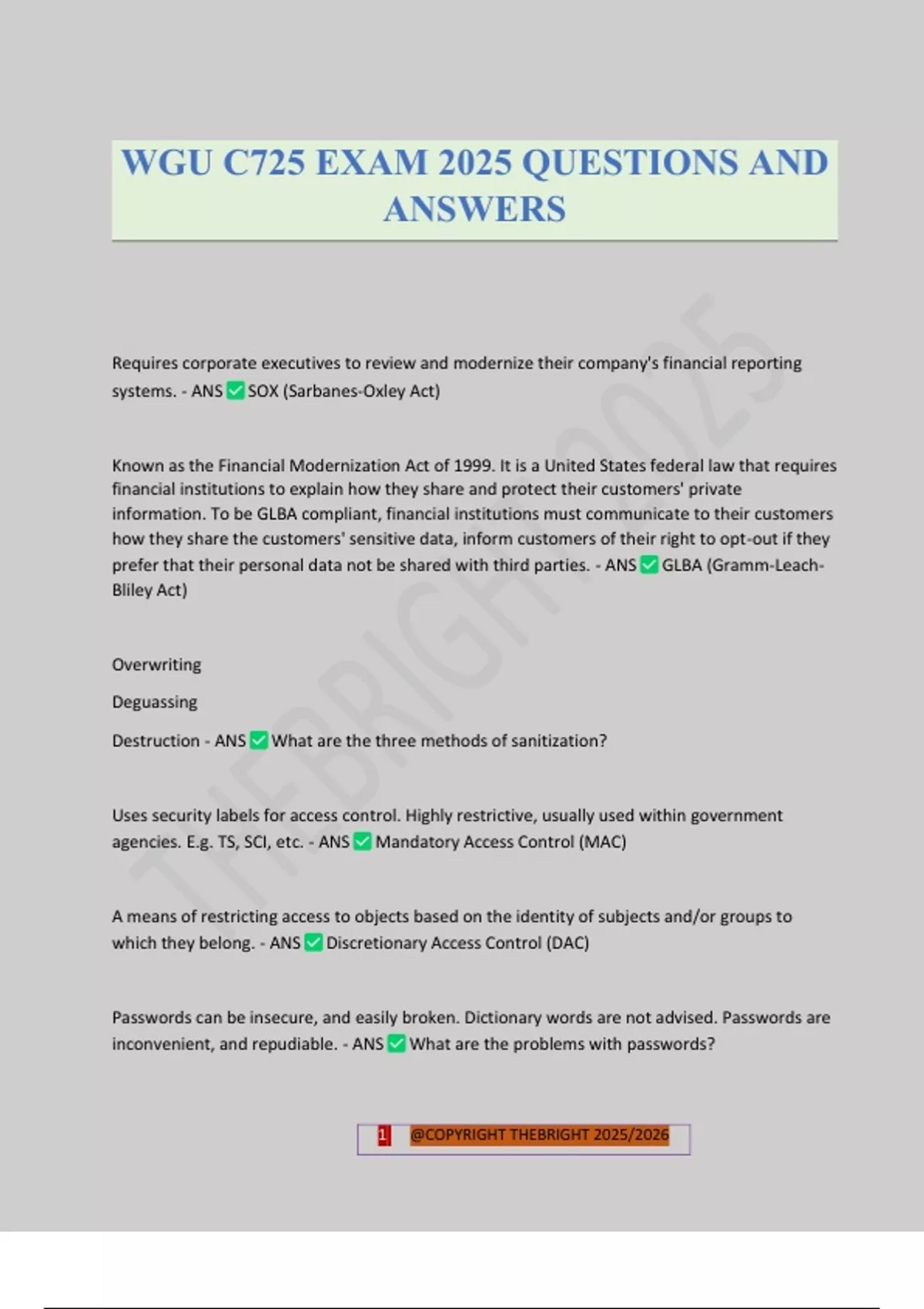 WGU C725 EXAM 2025 QUESTIONS AND ANSWERS