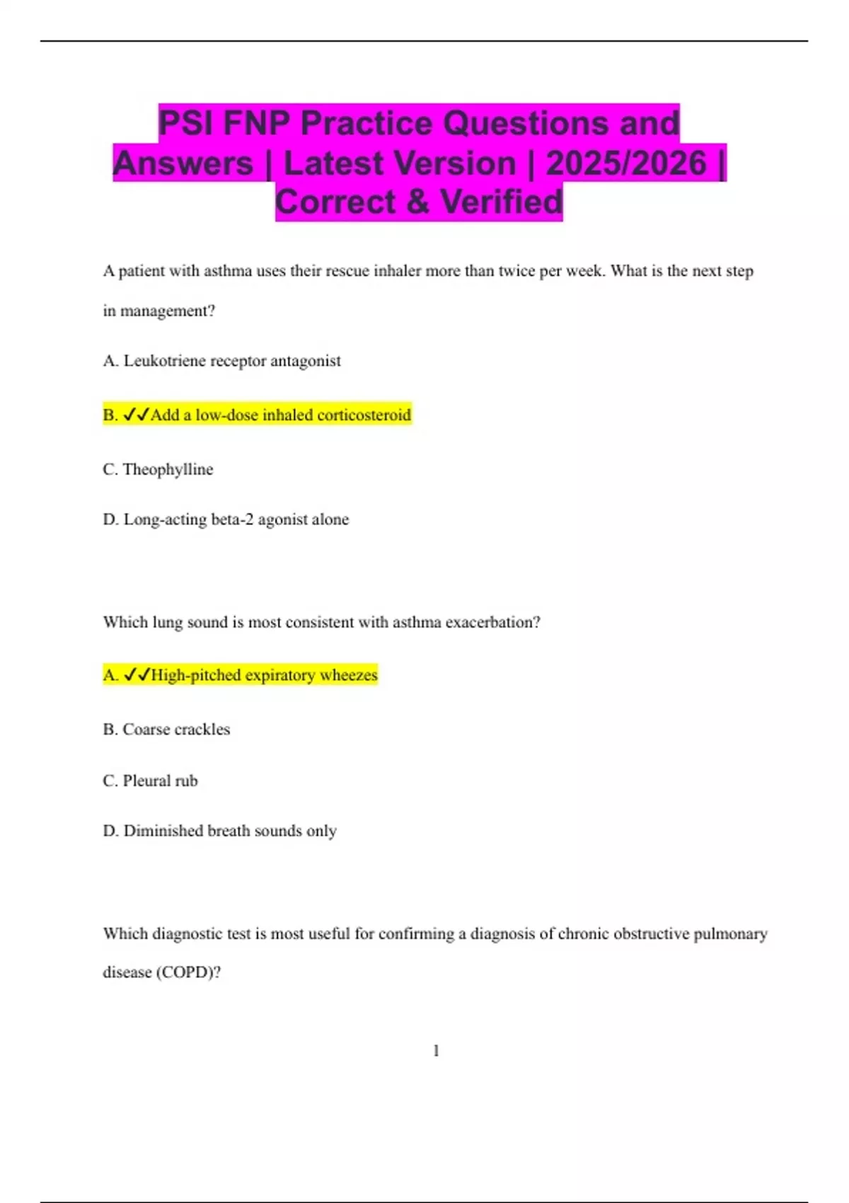 A. ✔✔High-pitched expiratory wheezes
