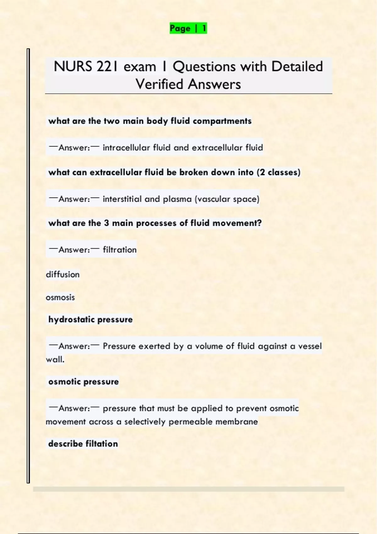 NURS 221 exam 1 Questions with Detailed
