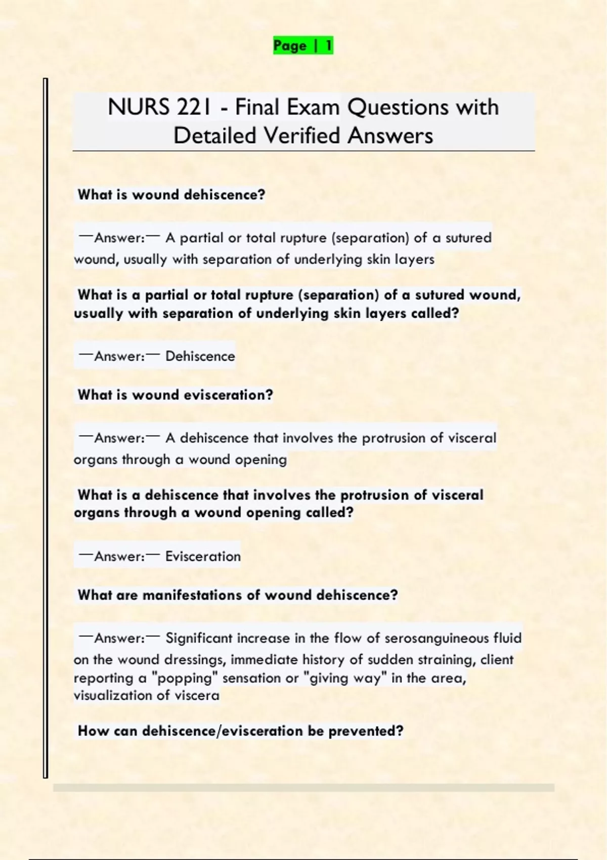 NURS 221 - Final Exam Questions with Detailed Verified Answers