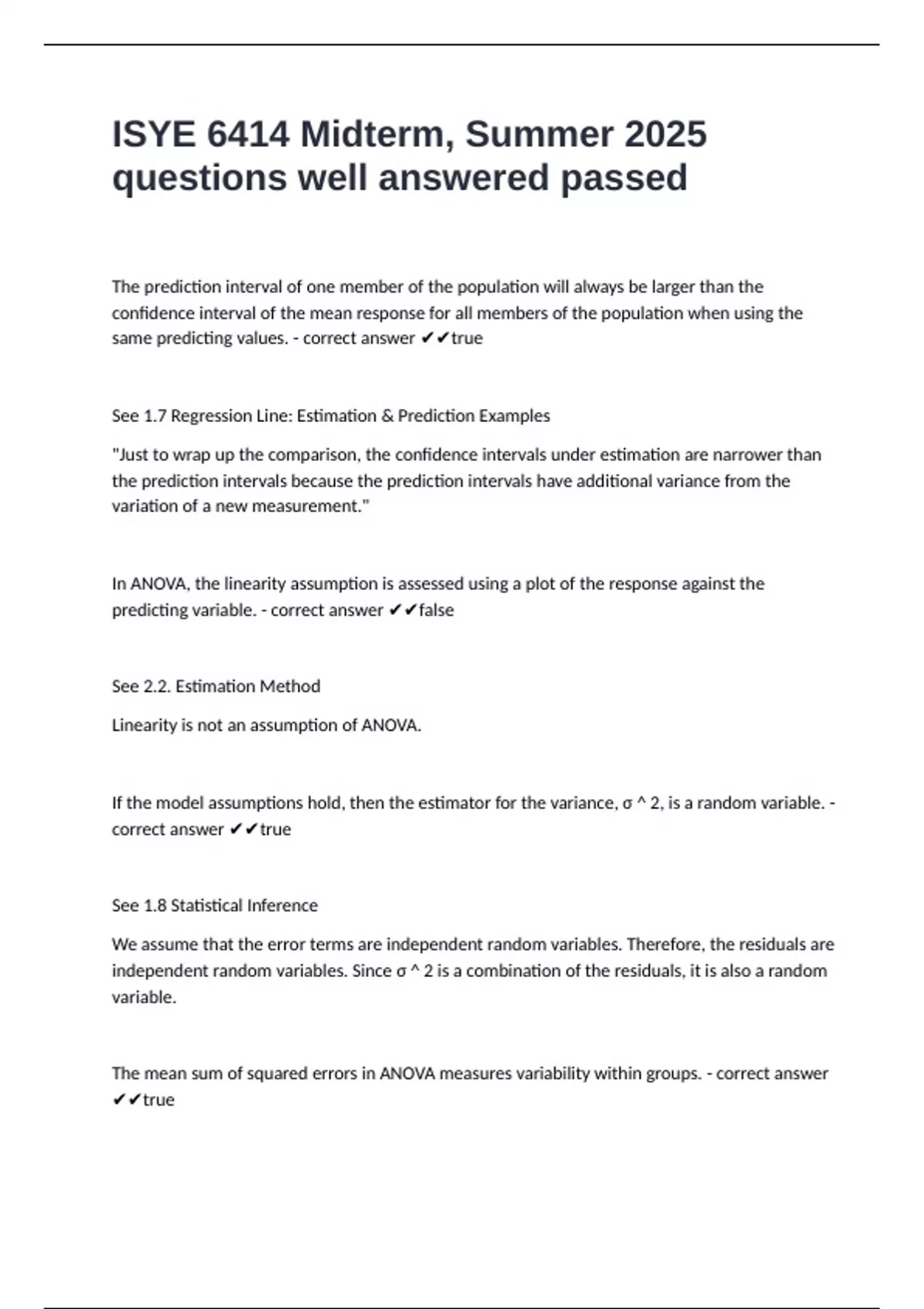 ISYE 6414 Midterm, Summer 2025 questions well answered passed
