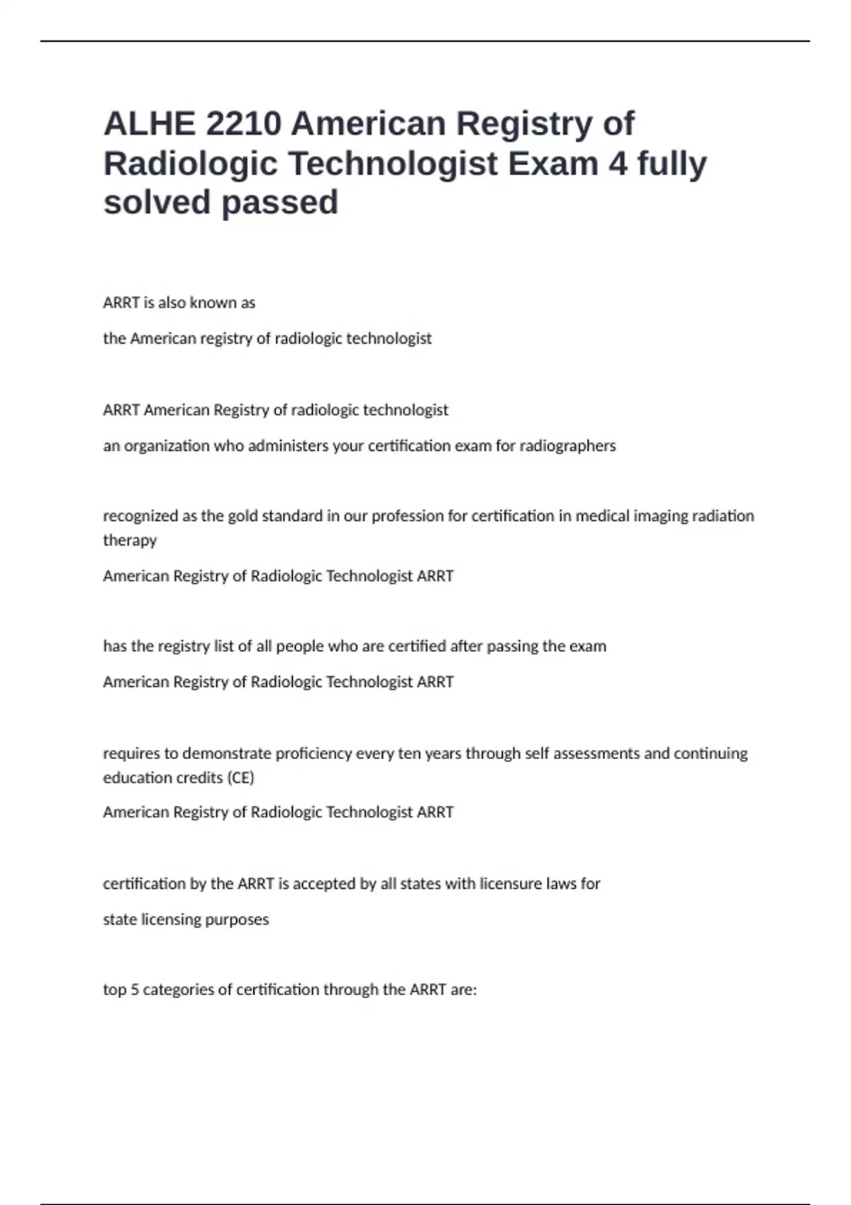 top 5 categories of certification through the ARRT are: