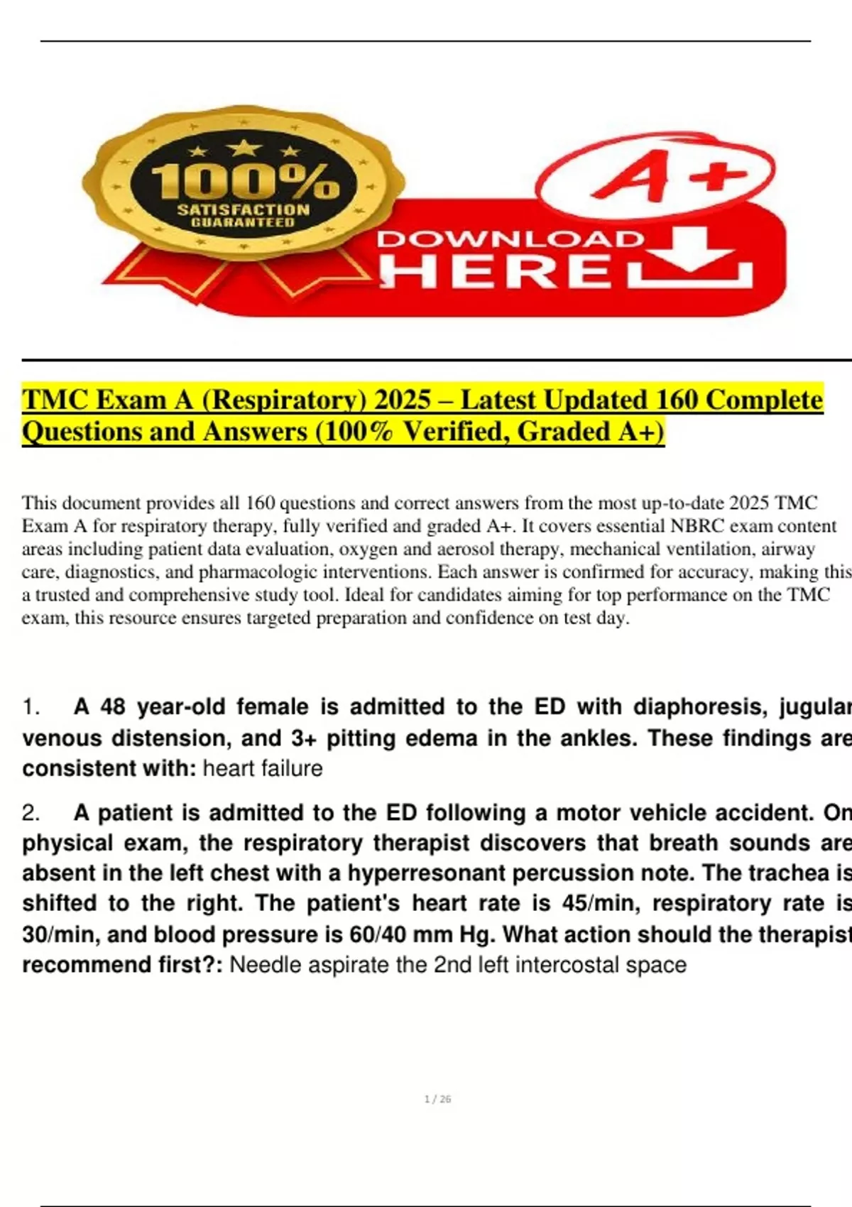 This document provides all 160 questions and correct answers from the most up-to-date 2025 TMC