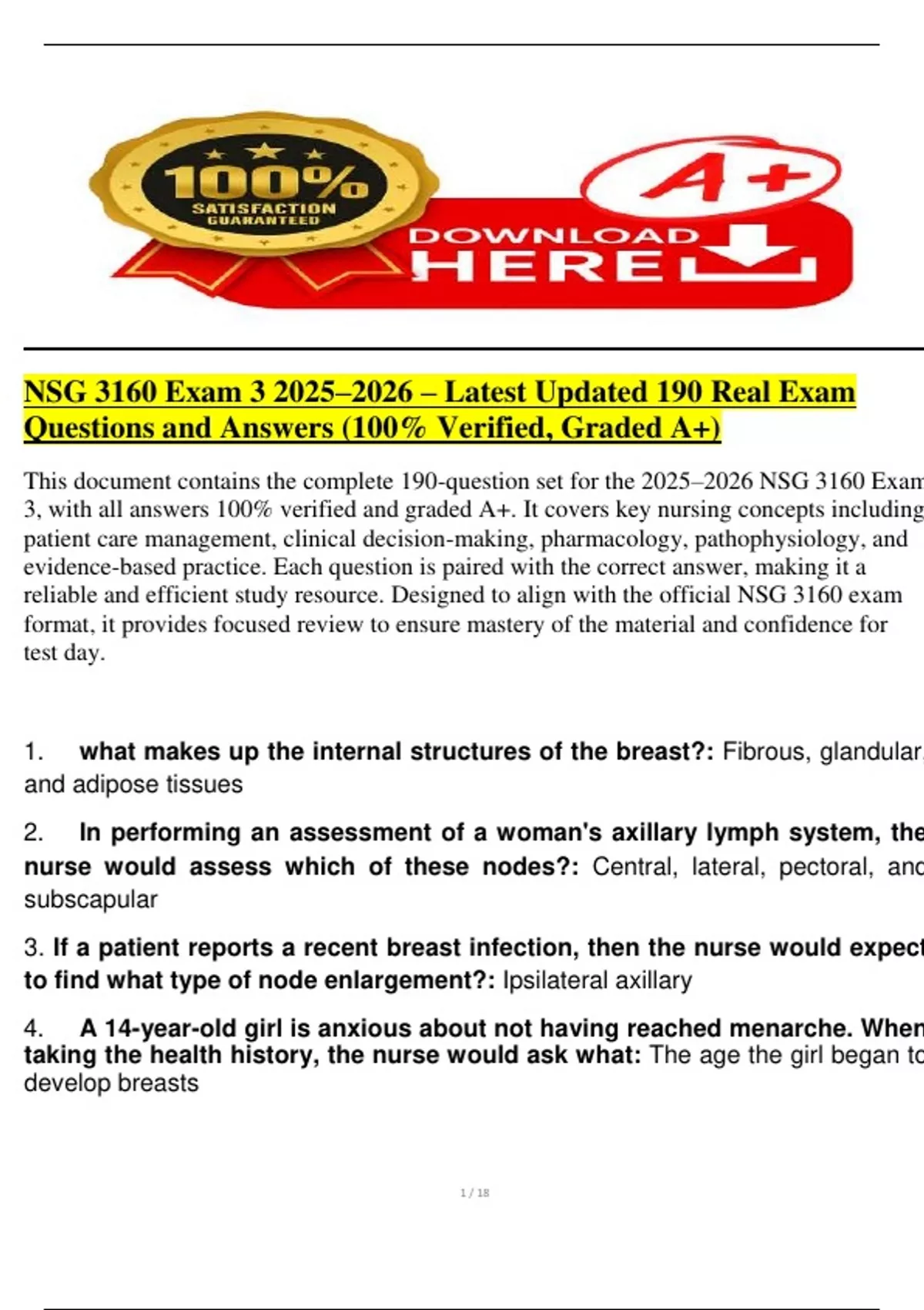 3, with all answers 100% verified and graded A+. It covers key nursing concepts including