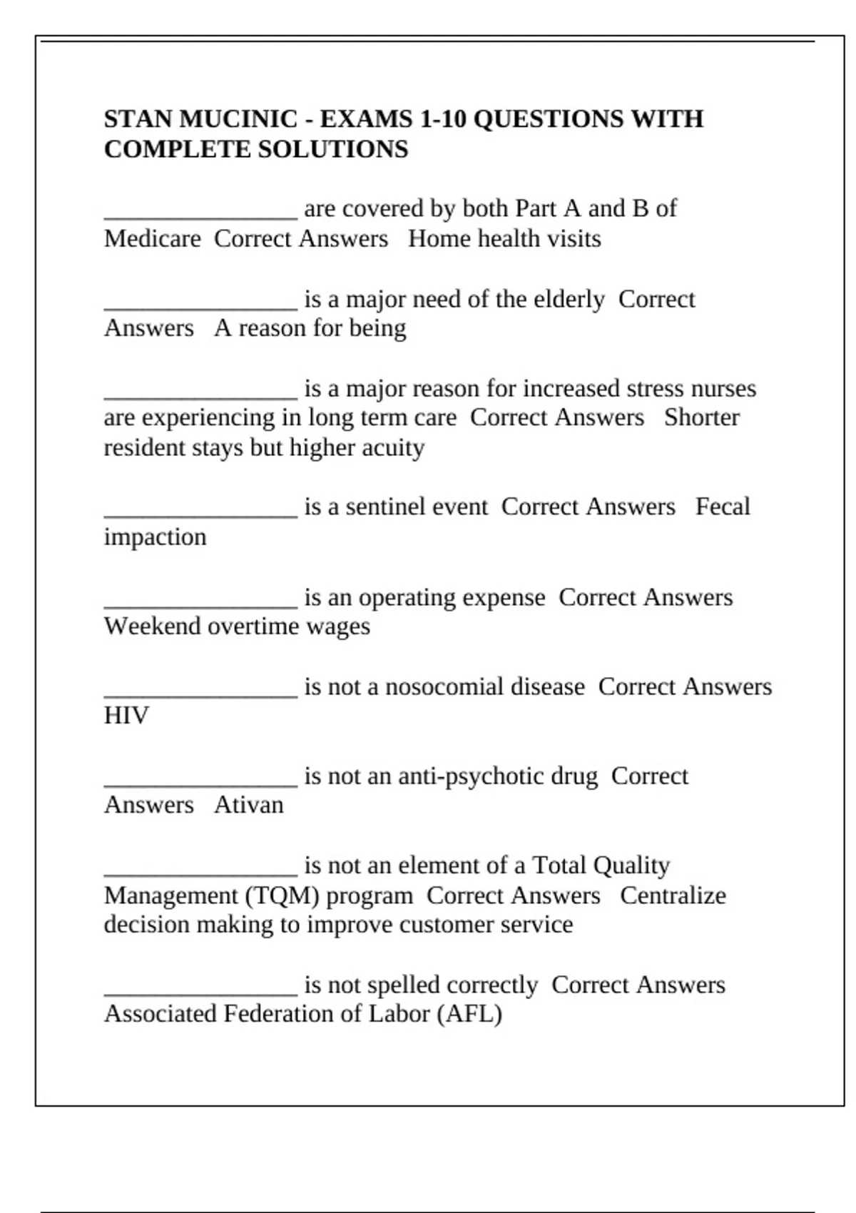 STAN MUCINIC - EXAMS 1-10 QUESTIONS WITH COMPLETE SOLUTIONS