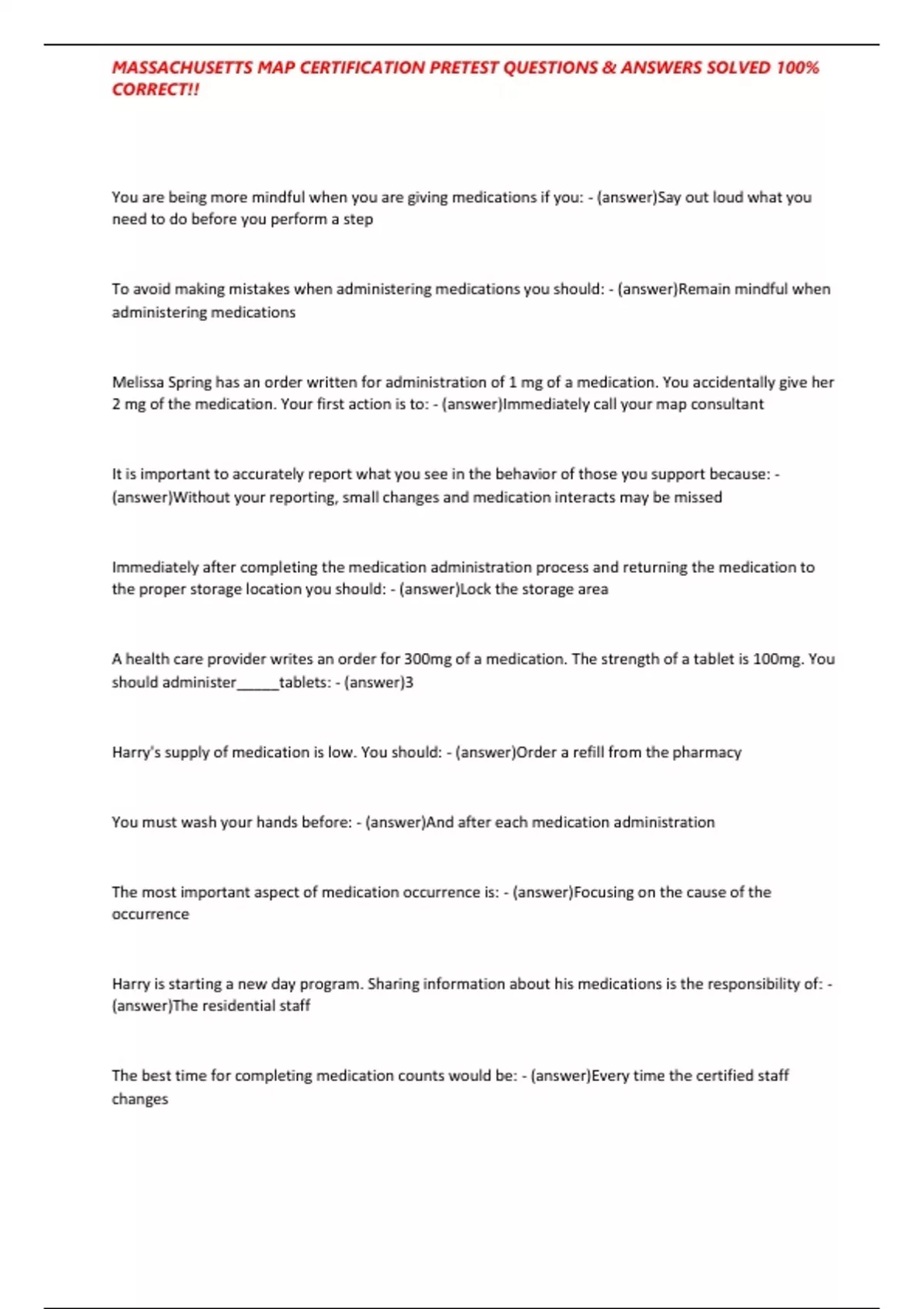 , MASSACHUSETTS MAP CERTIFICATION PRETEST QUESTIONS & ANSWERS SOLVED 100%