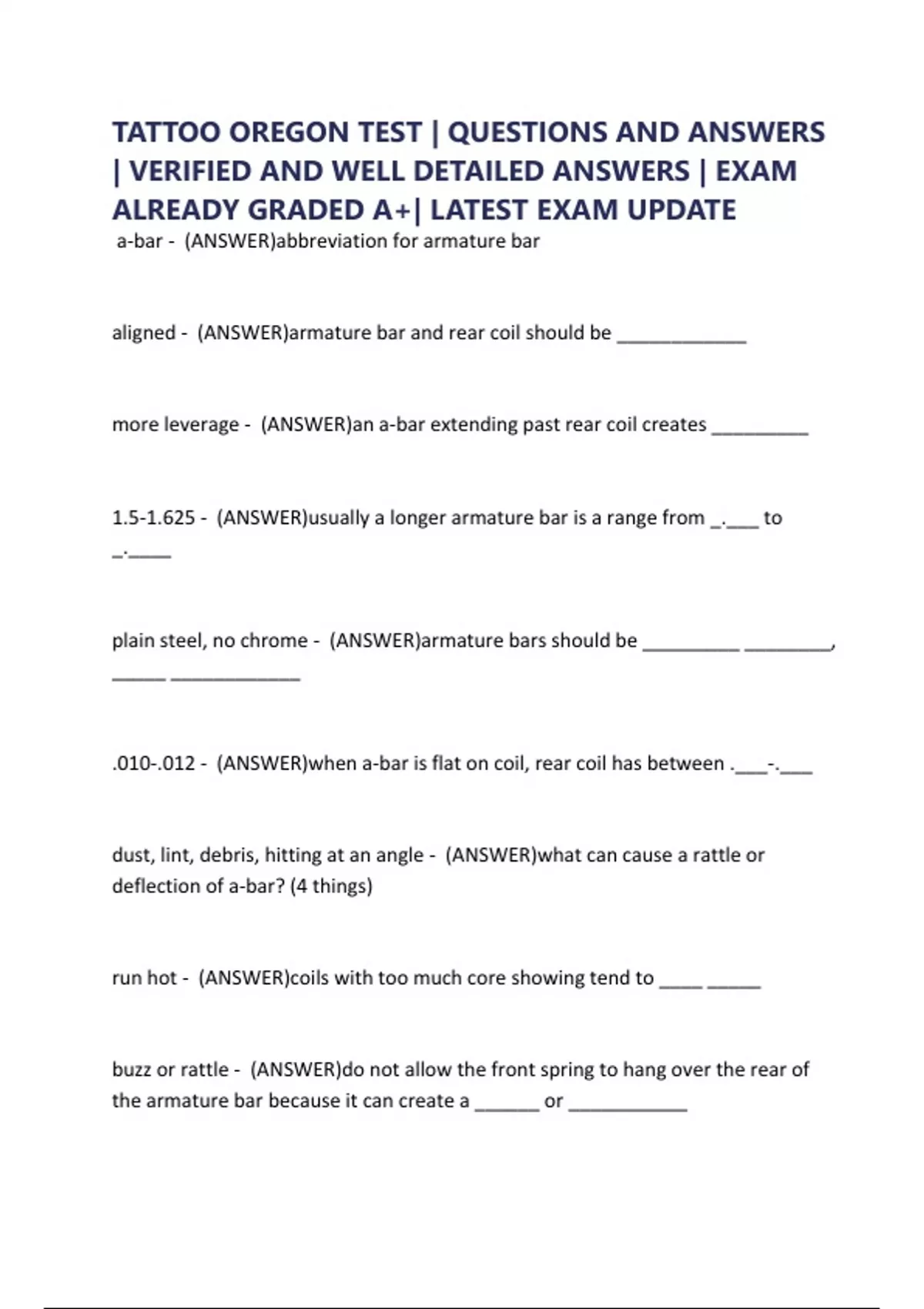 TATTOO OREGON TEST | QUESTIONS AND ANSWERS | VERIFIED AND WELL DETAILED ANSWERS | EXAM ALREADY GRADED A+| LATEST EXAM UPDATE