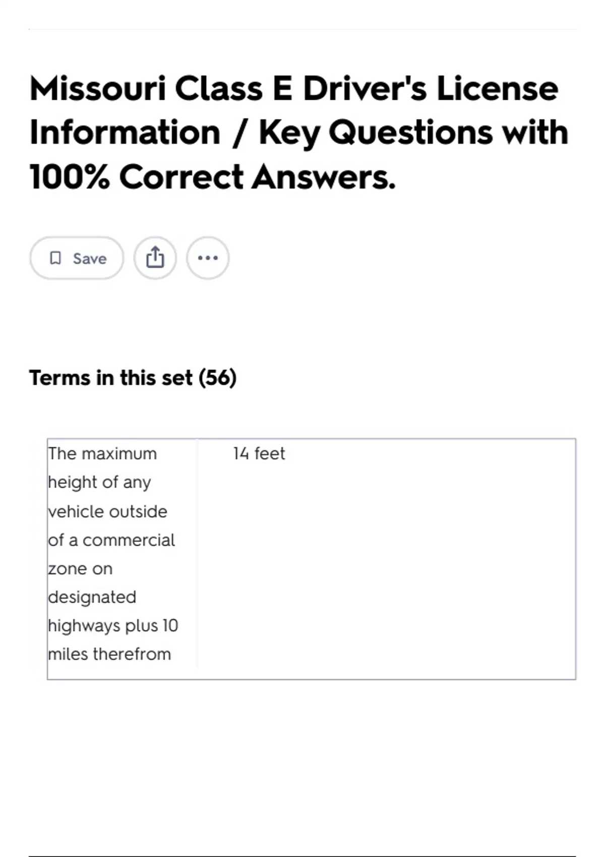 Missouri Class E Driver's License Information / Key Questions with 100% Correct Answers.