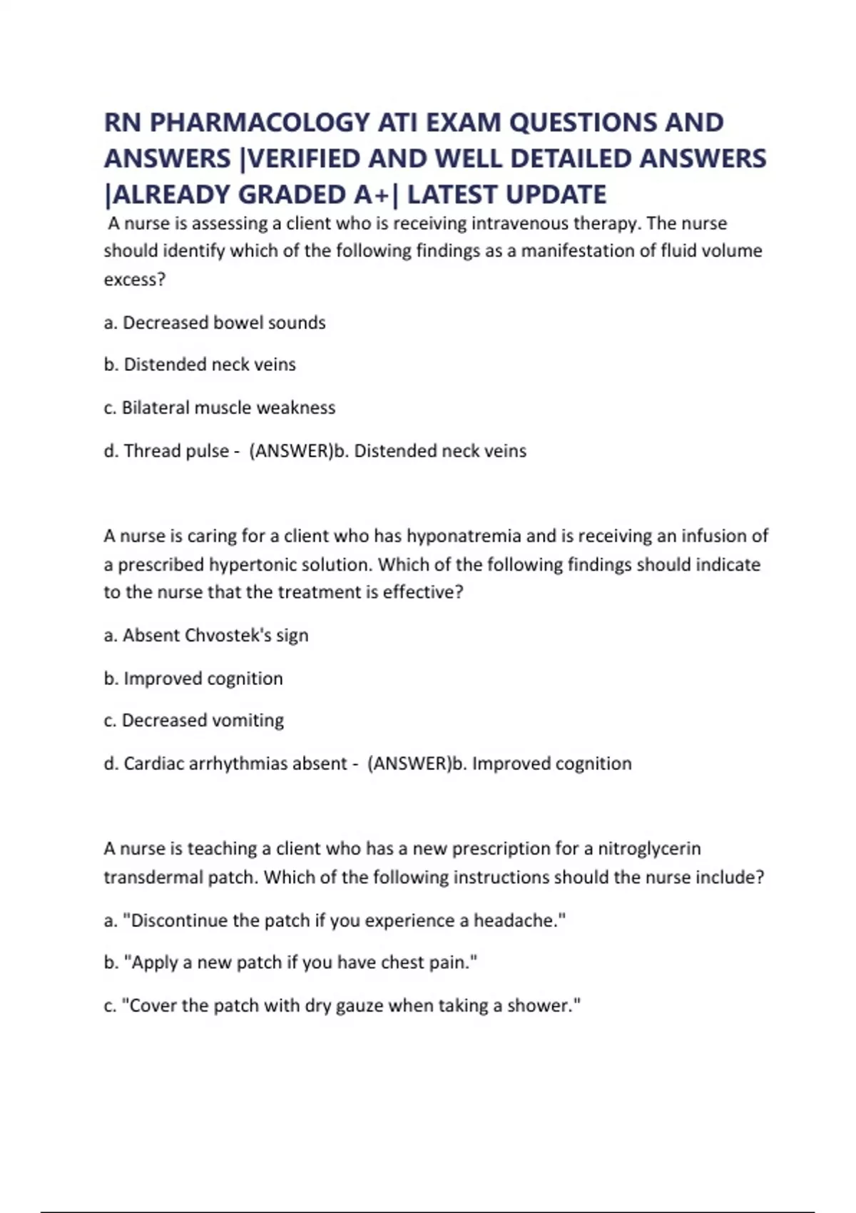 RN PHARMACOLOGY ATI EXAM QUESTIONS AND ANSWERS |VERIFIED AND WELL DETAILED ANSWERS |ALREADY GRADED A+| LATEST UPDATE