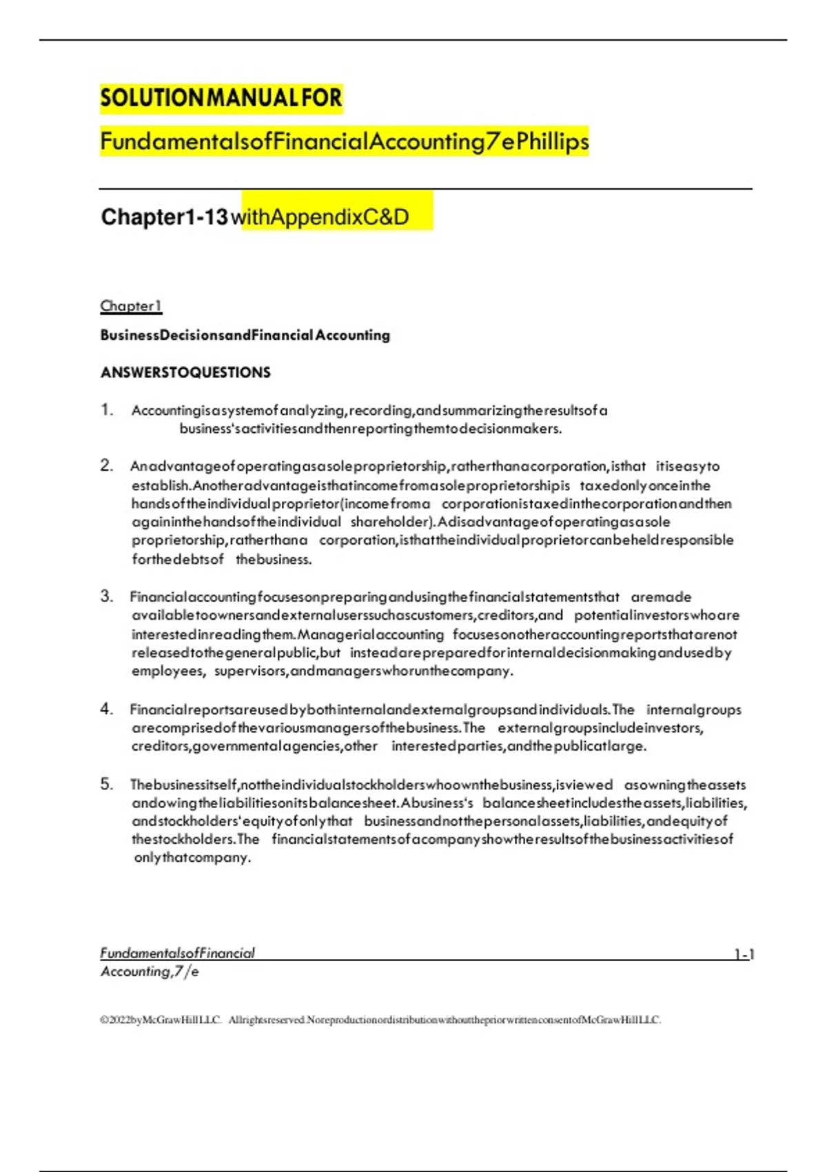 Solution Manual For Fundamentals of Financial Accounting 7th Edition Phillips.