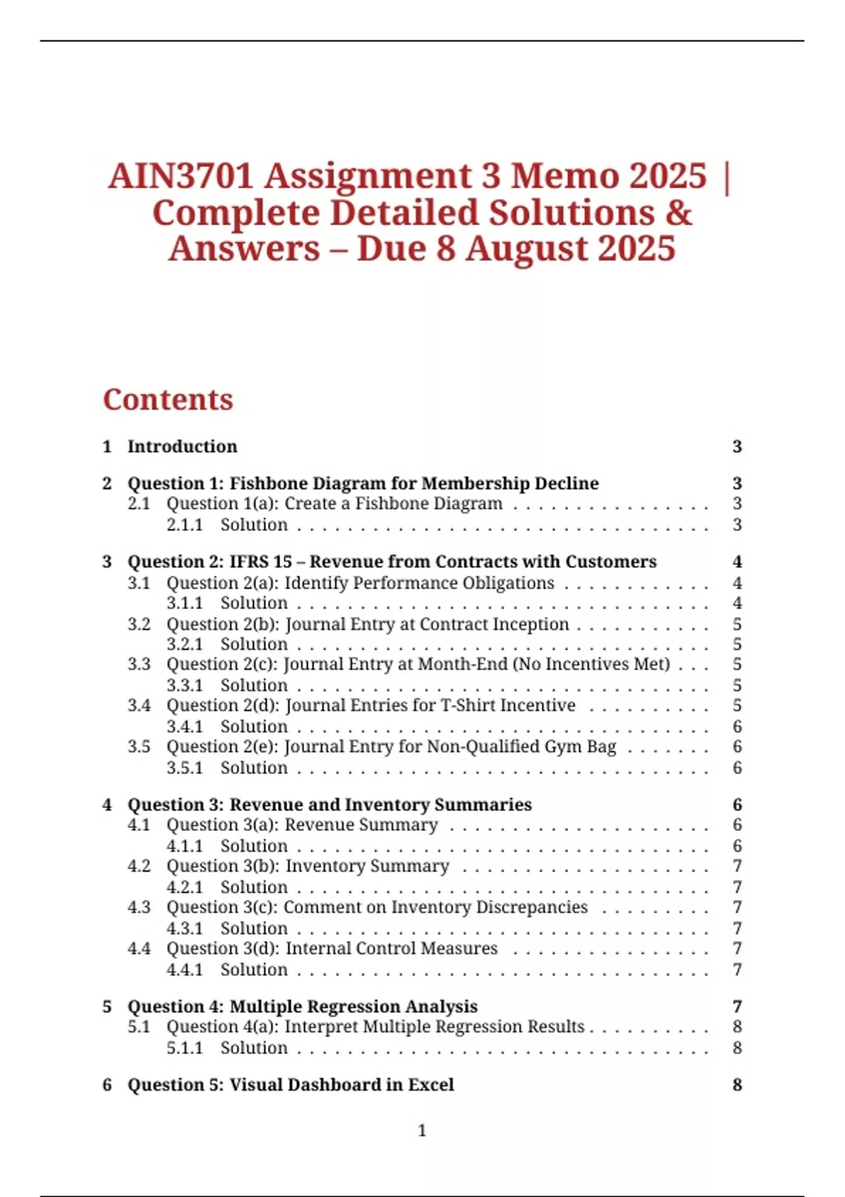 3.3 Question 2(c): Journal Entry at Month-End (No Incentives Met) . . . 5