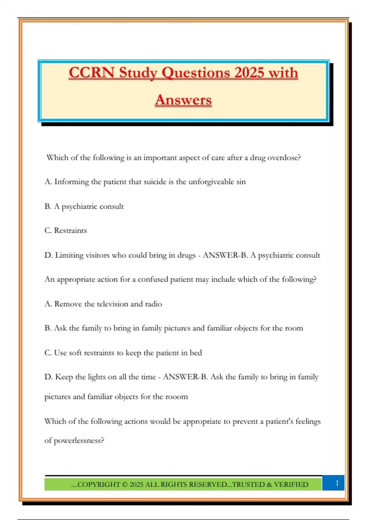 CCRN Study Questions 2025 with