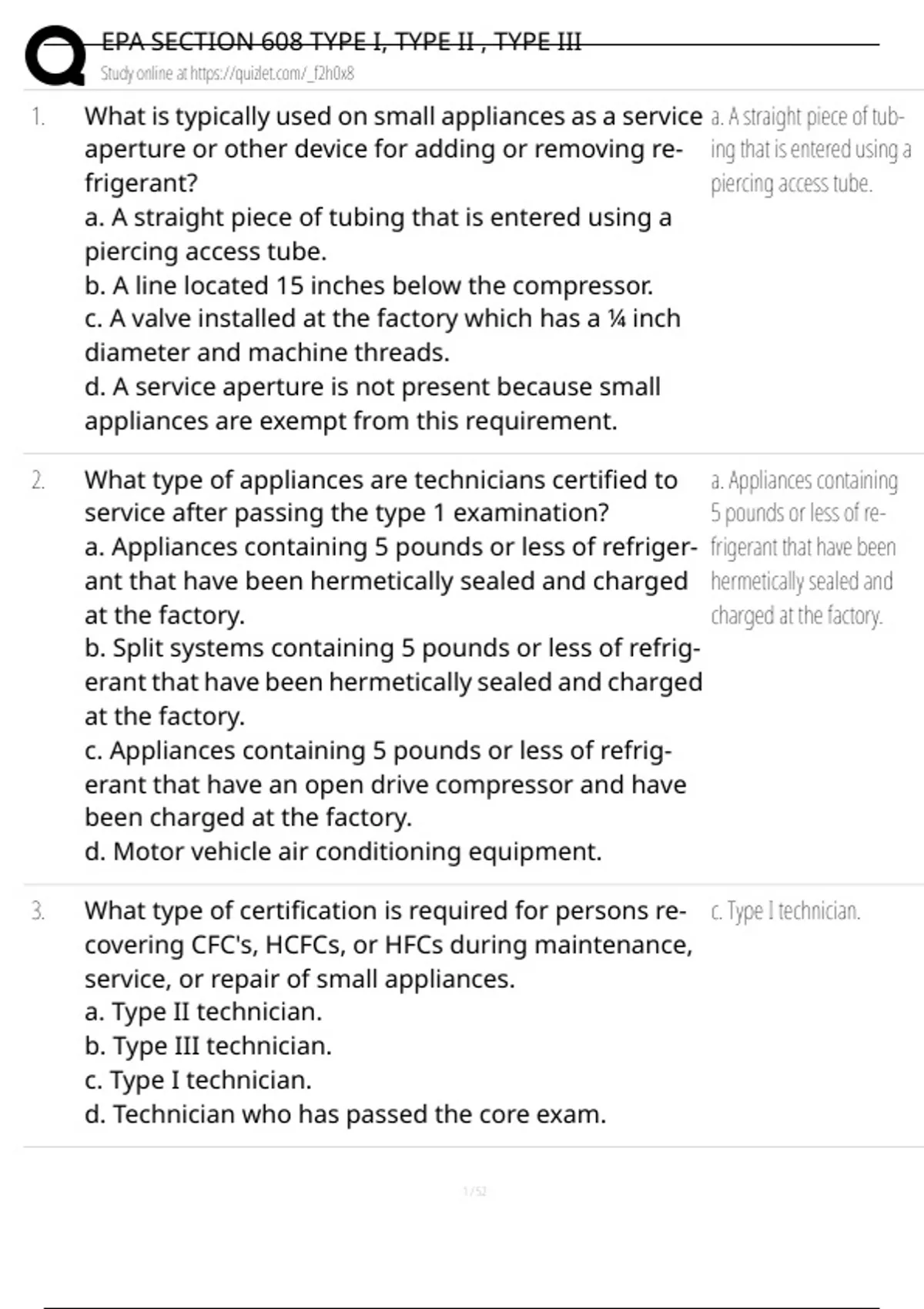 , EPA SECTION 608 TYPE I, TYPE II , TYPE III
