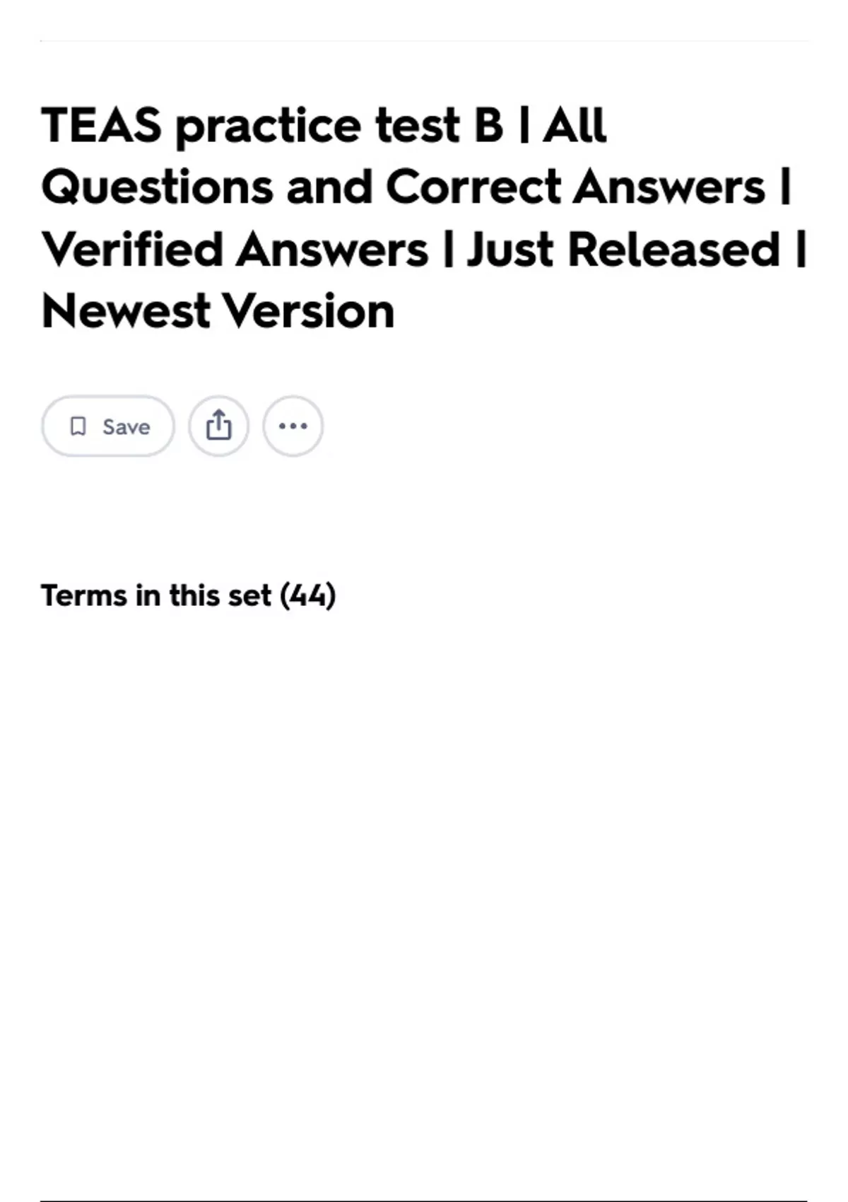 TEAS practice test B | All Questions and Correct Answers | Verified Answers | Just Released | Newest Version