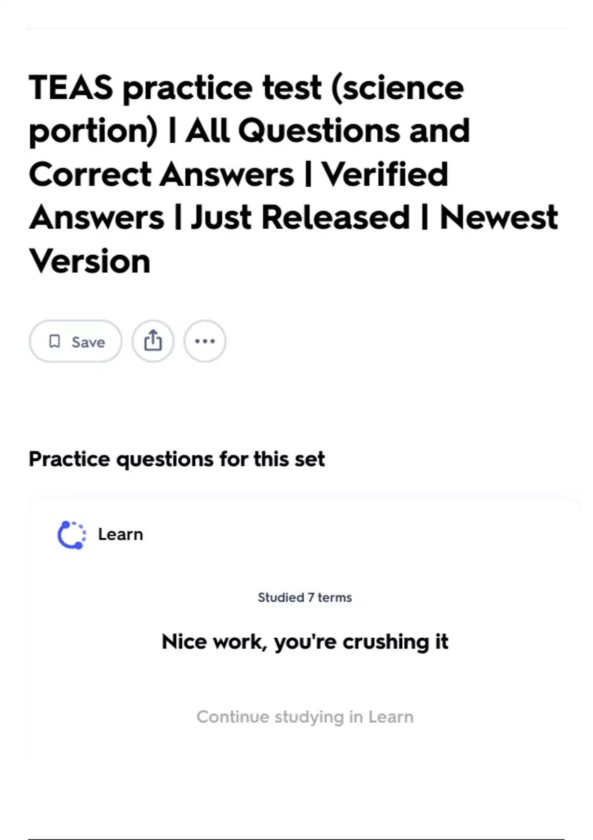 TEAS practice test (science portion) | All Questions and Correct Answers | Verified Answers | Just Released | Newest Version
