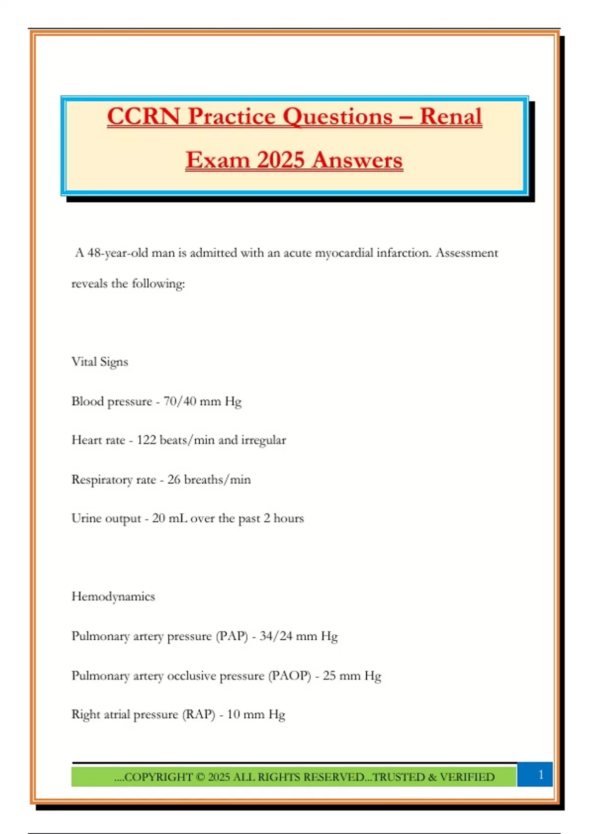 CCRN Practice Questions – Renal Exam 2025 Answers