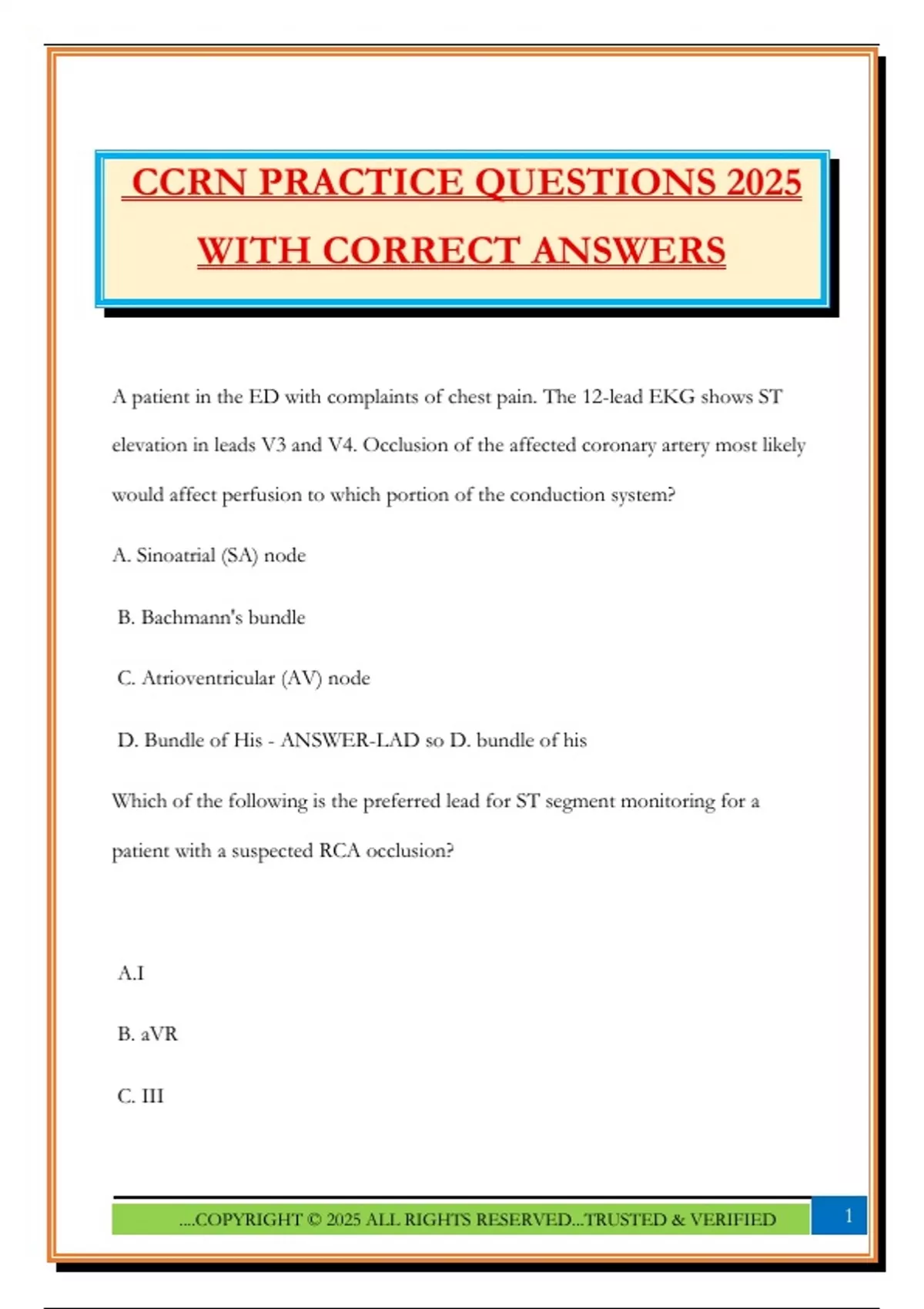 CCRN PRACTICE QUESTIONS 2025