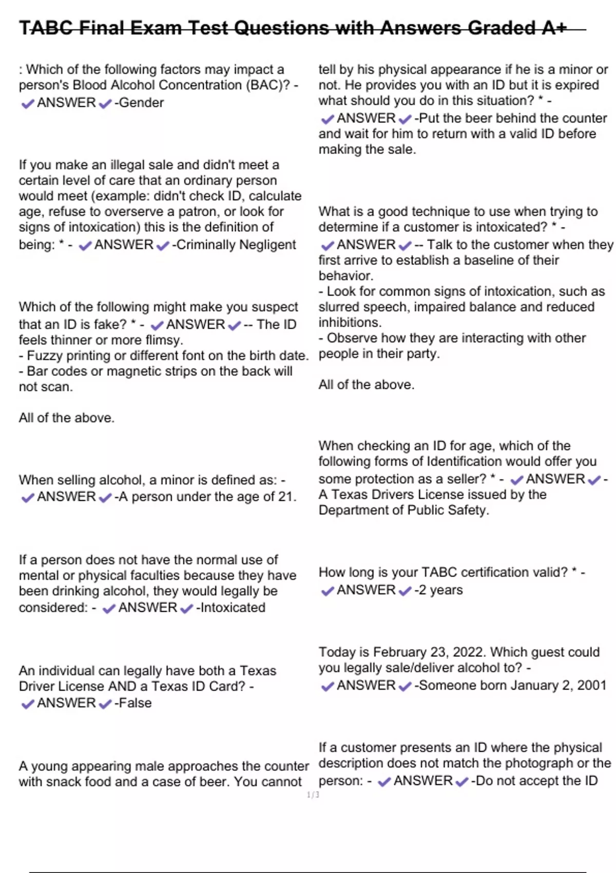 mental or physical faculties because they have How long is your TABC certification valid? * -