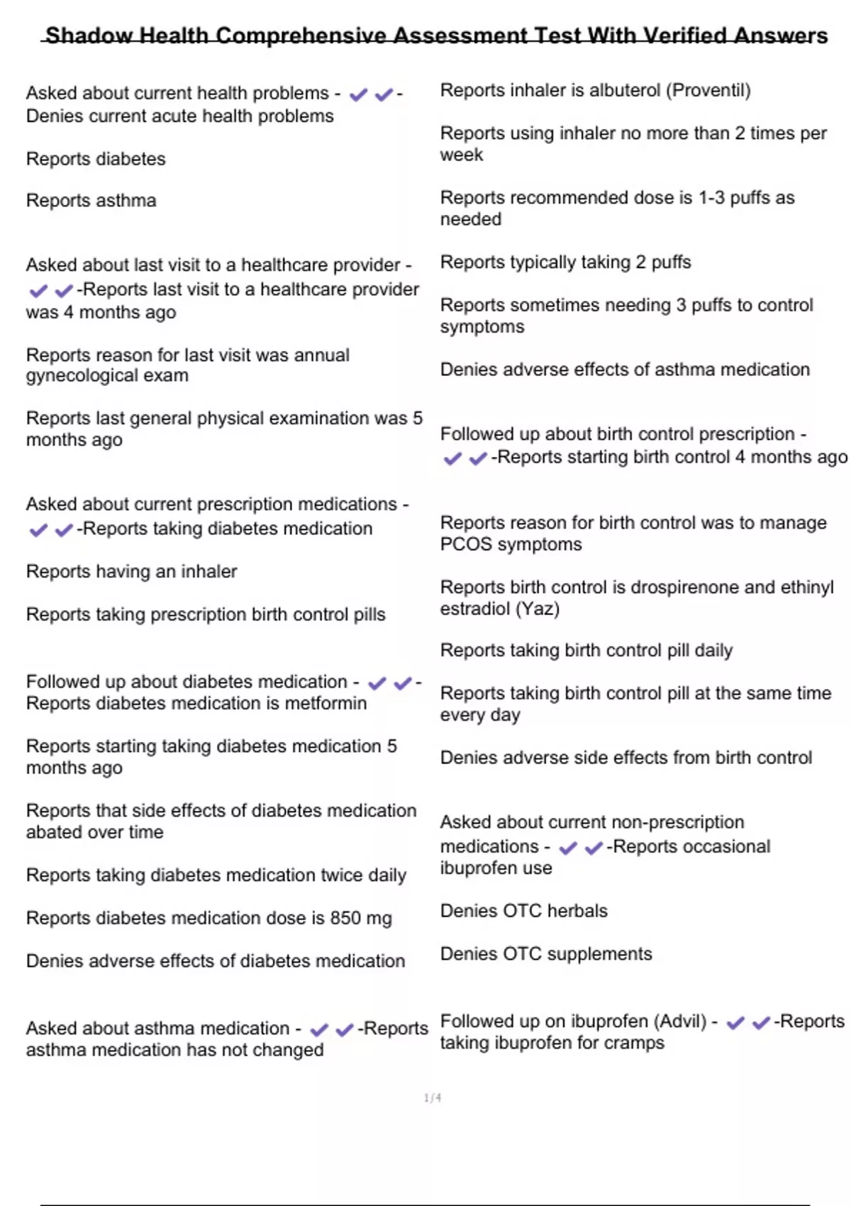 Shadow Health Comprehensive Assessment Test With Verified Answers