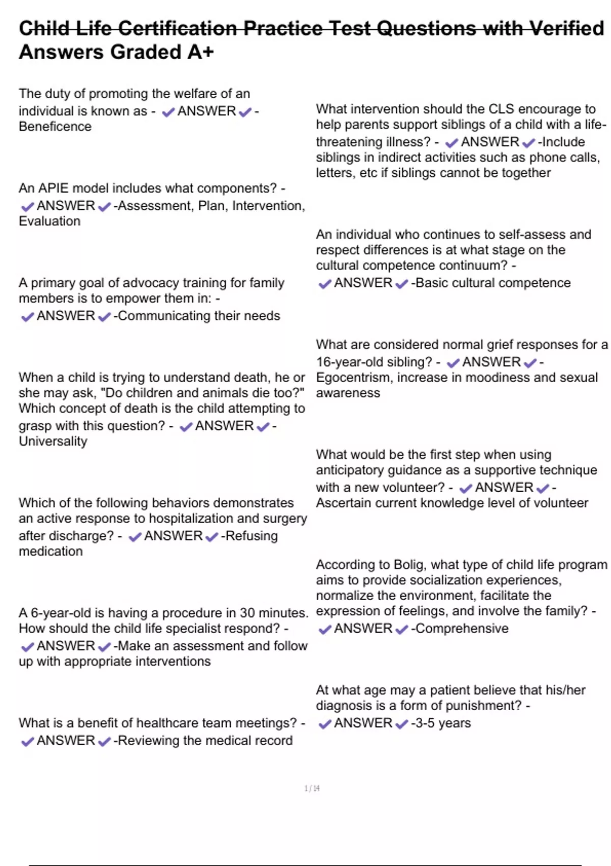 Child Life Certification Practice Test Questions with Verified Answers Graded A+