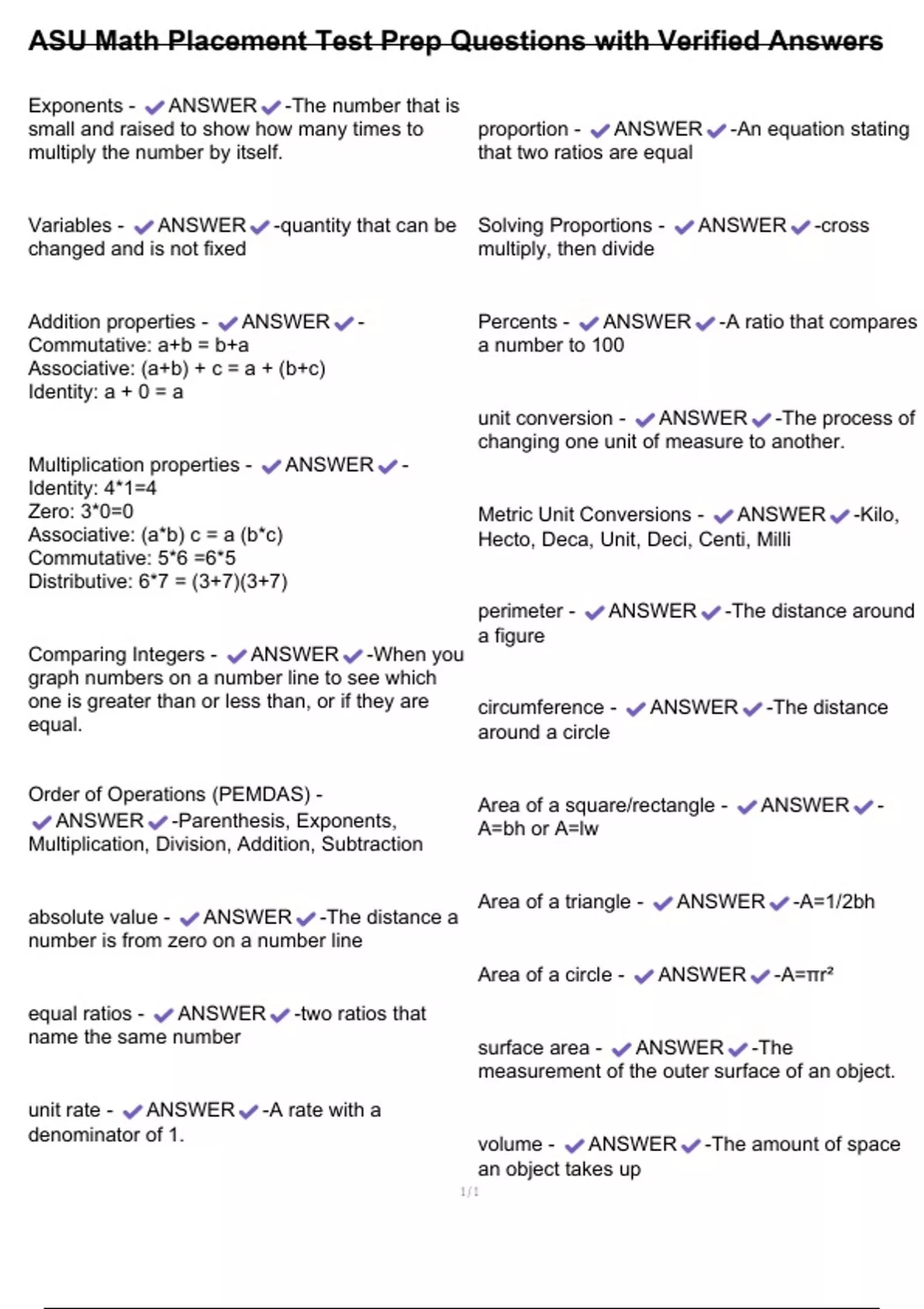 Addition properties - ANSWER - Percents - ANSWER -A ratio that compares